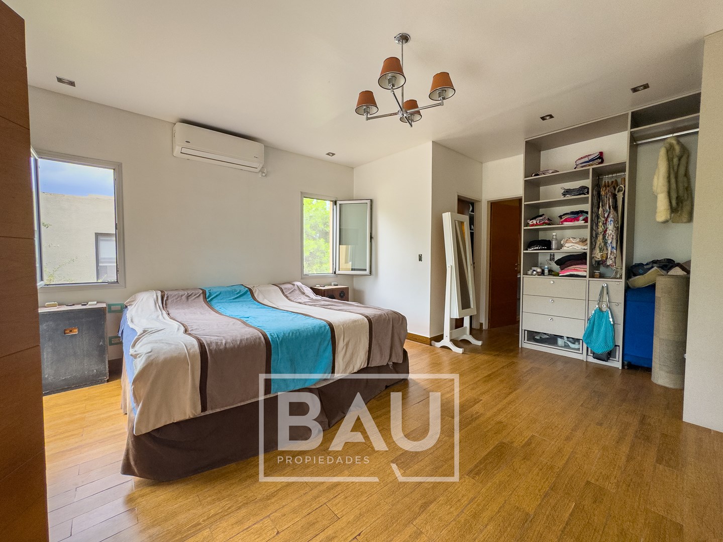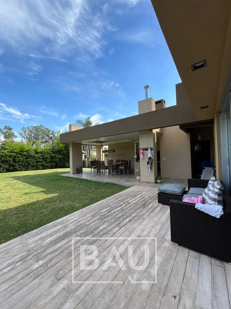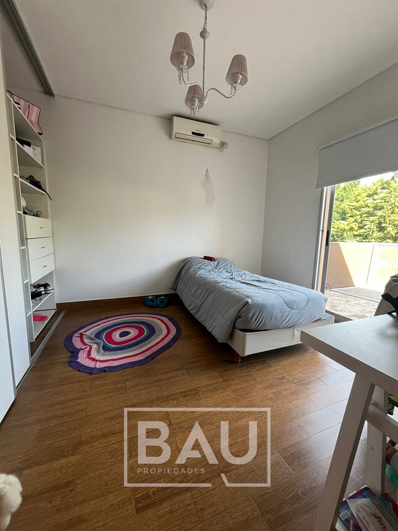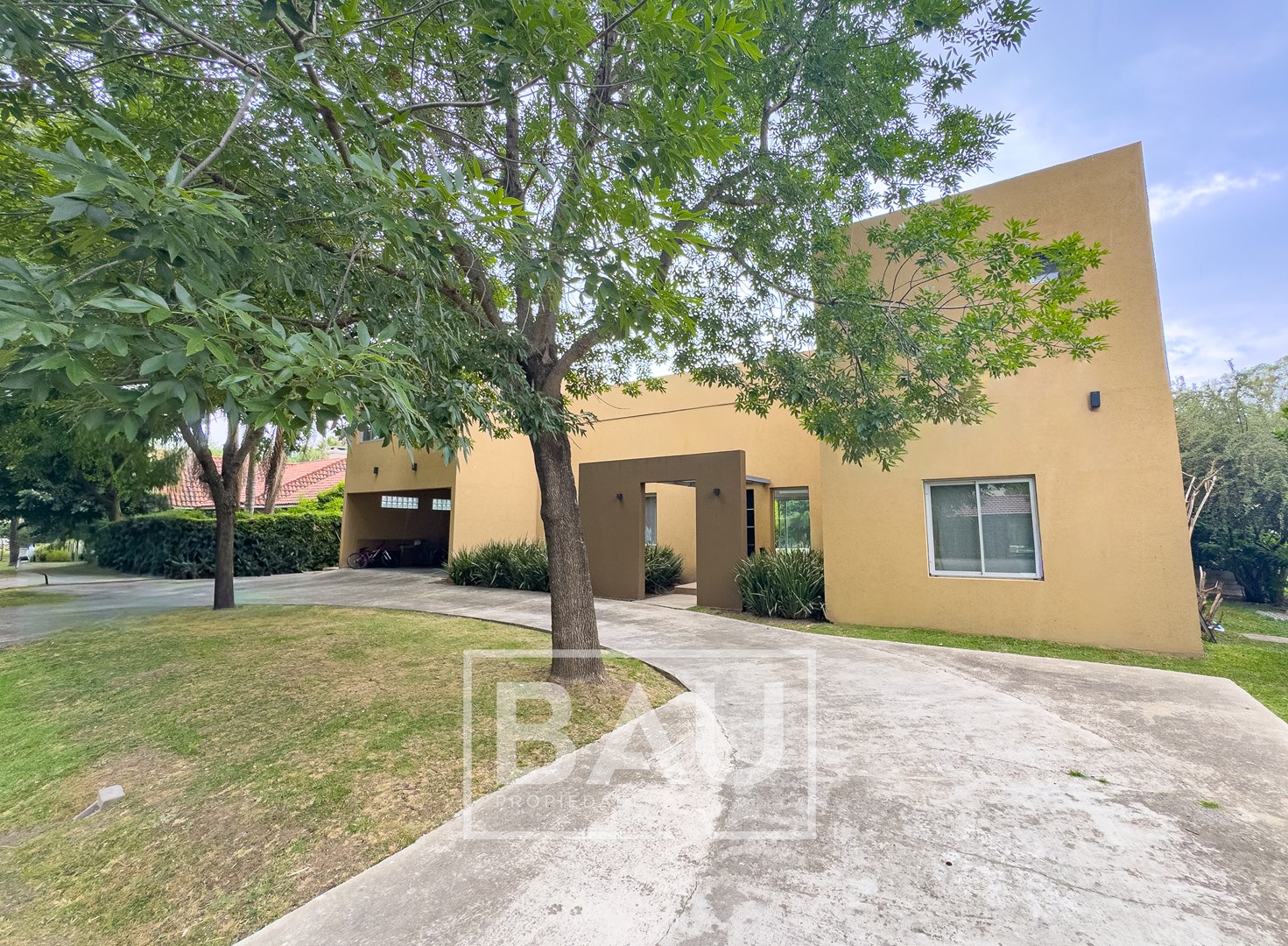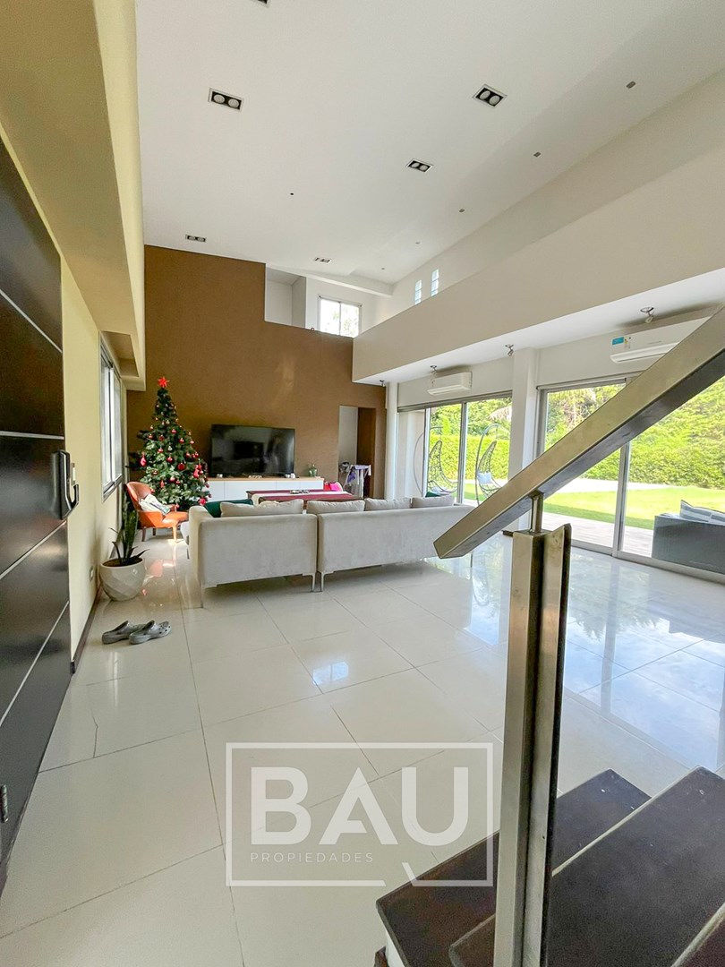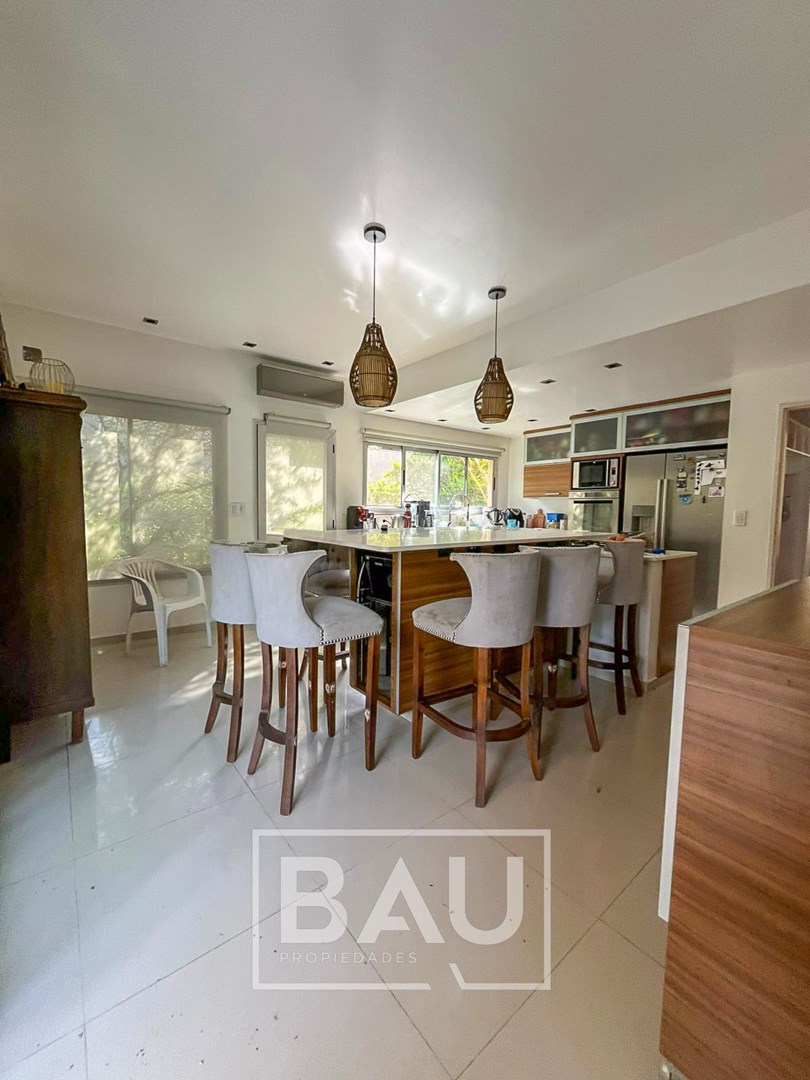BAU PROPIEDADES - ALQUILER TEMPORARIO FEBRERO – CASA MODERNA – 4 DORMITORIOS - PISCINA - GALERÍA CON PARRILLA - BARRIO CERRADO SANTA ANA Te presentamos esta casa de estilo moderno desarrollada en dos plantas, ubicada en el barrio cerrado Santa Ana, ideal para que disfrutes este verano en un entorno seguro. La propiedad cuenta con aproximadamente 390 m² cubiertos y se destaca por sus ambientes amplios, luminosos y una distribución funcional pensada para el confort familiar y la vida social. En planta baja se desarrolla un amplio living comedor, de generosas dimensiones y muy luminoso, con visuales abiertas al jardín y salida directa a la galería. La cocina, de diseño moderno, cuenta con isla central, horno empotrado, microondas, lavavajillas, freezer, amplio espacio de guardado y se encuentra completamente equipada, incluyendo vajilla para diez personas. Un dormitorio en suite con placard empotrado. Completa este nivel un toilette de recepción, lavadero independiente y baño de servicio. En exteriores cuenta con una extensa galería con parrilla y mesada con frizzer, además de una piscina de 9 x 4 metros revestida en venecitas y con piso antideslizante. El jardín acompaña el espacio con un entorno cómodo y funcional. Cuenta además con cochera cubierta para dos autos. En planta alta se ubica el sector íntimo, compuesto por cuatro dormitorios. El dormitorio principal es en suite, con vestidor. Dos dormitorios adicionales cuentan con placard empotrado y salida a balcón, estas habitaciones comparten un baño completo con bañera. La casa dispone de aire acondicionado en todos los ambientes, lo que garantiza confort durante toda la estadía. Una propuesta moderna y completa, ideal para alquiler temporario, que combina diseño, amplitud y equipamiento en uno de los barrios cerrados más buscados de la zona. Valor alquiler mes de febrero: U$S 3.800. Depósito en garantía: U$S 1.500 Consultanos para más información. ¡No esperes más y vení a conocer esta excelente propuesta para pasarla bien este verano 2026! La información comercial incluida representa material de carácter informativo y/o ilustrativo, pudiendo no ser exacta, estar sujeta a errores, omisiones, cambios, incluyendo el precio o la retirada de la oferta sin previo aviso. BAU PROPIEDADES OESTE