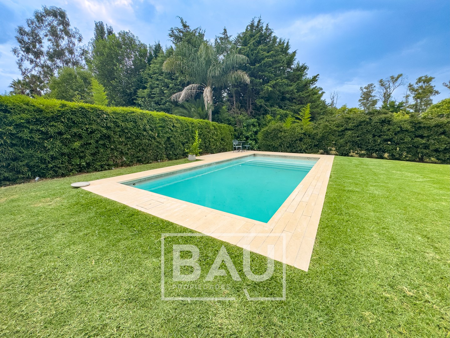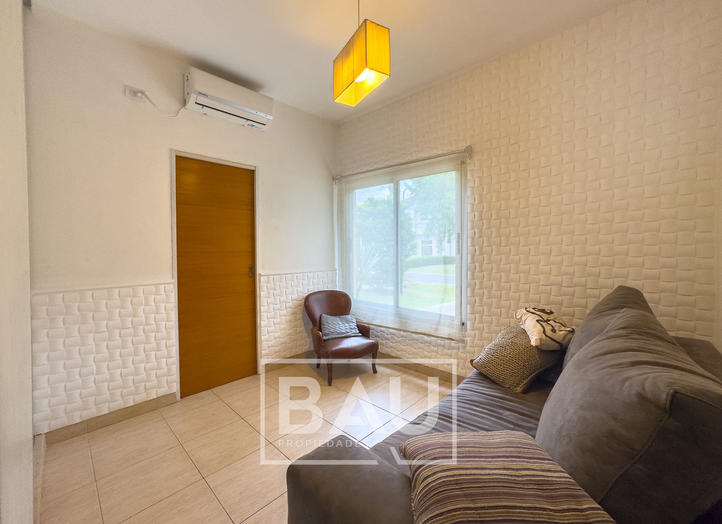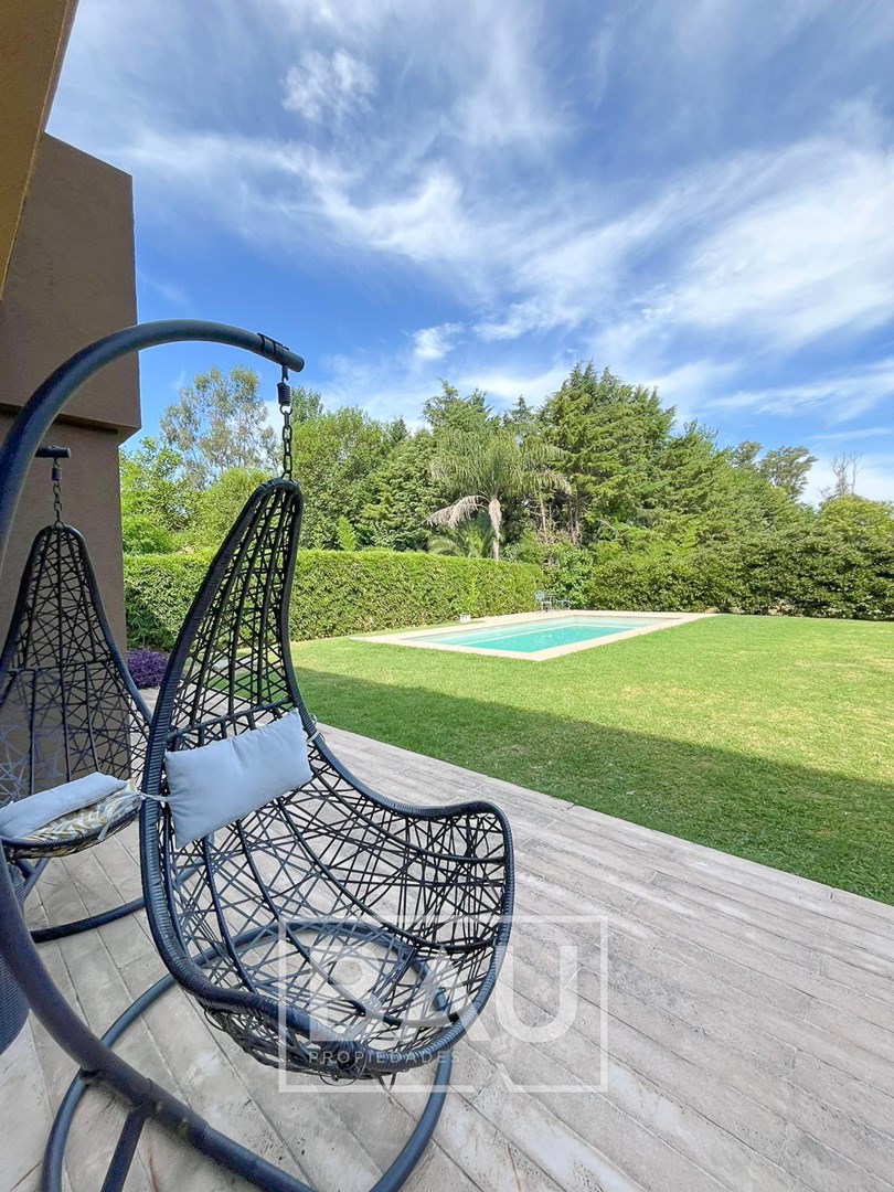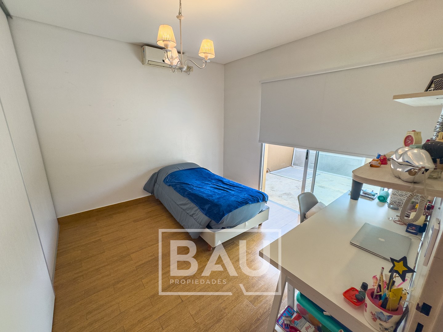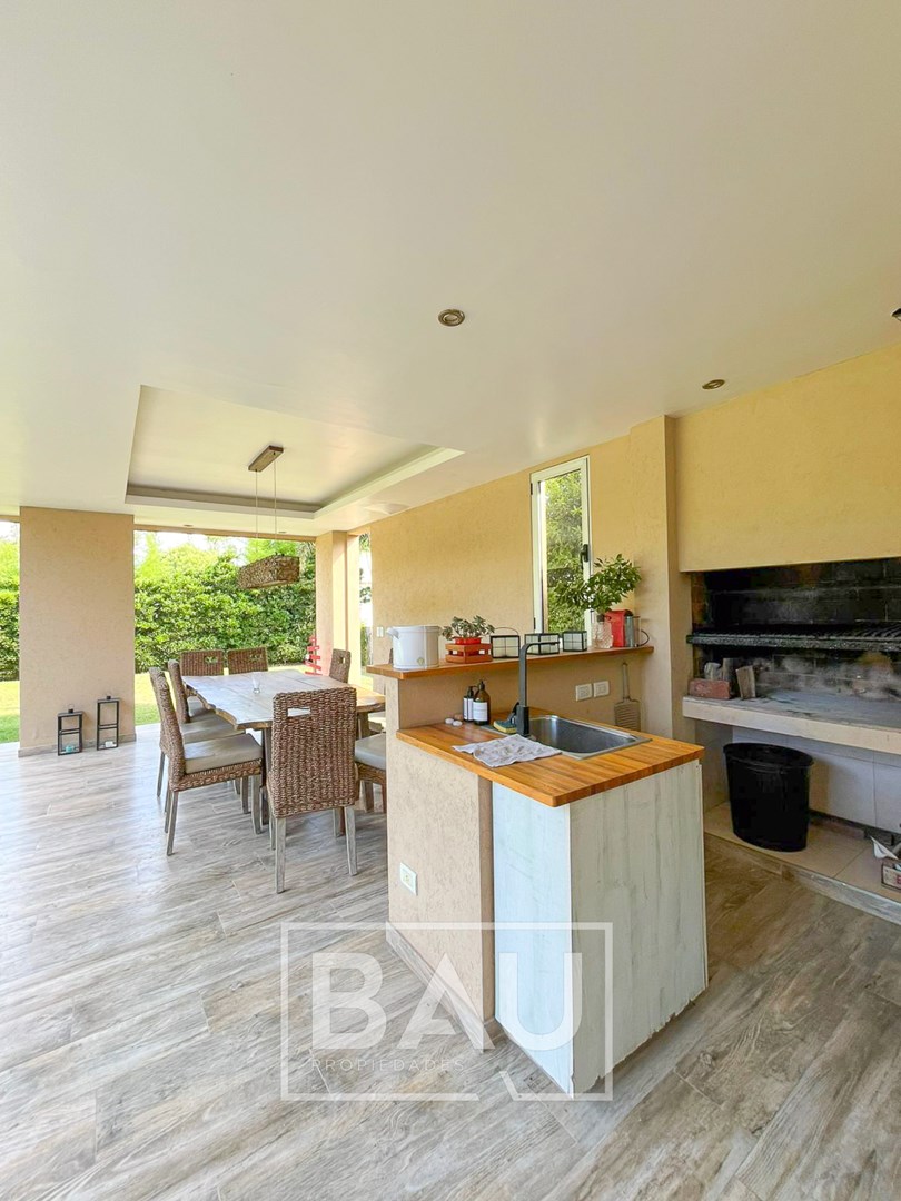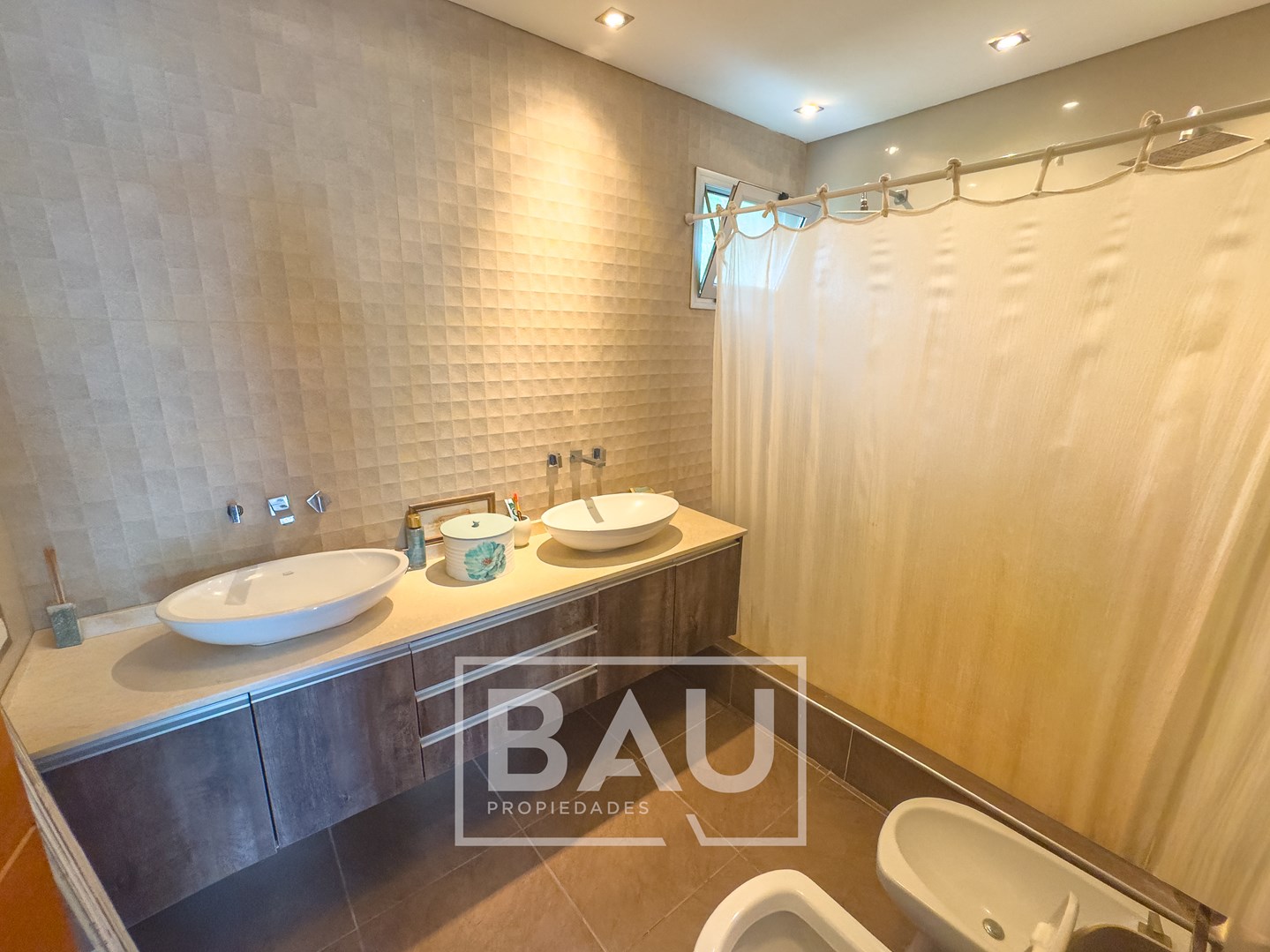 BAU PROPIEDADES - ALQUILER TEMPORARIO FEBRERO – CASA MODERNA – 4 DORMITORIOS - PISCINA - GALERÍA CON PARRILLA - BARRIO CERRADO SANTA ANA Te presentamos esta casa de estilo moderno desarrollada en dos plantas, ubicada en el barrio cerrado Santa Ana, ideal para que disfrutes este verano en un entorno seguro. La propiedad cuenta con aproximadamente 390 m² cubiertos y se destaca por sus ambientes amplios, luminosos y una distribución funcional pensada para el confort familiar y la vida social. En planta baja se desarrolla un amplio living comedor, de generosas dimensiones y muy luminoso, con visuales abiertas al jardín y salida directa a la galería. La cocina, de diseño moderno, cuenta con isla central, horno empotrado, microondas, lavavajillas, freezer, amplio espacio de guardado y se encuentra completamente equipada, incluyendo vajilla para diez personas. Un dormitorio en suite con placard empotrado. Completa este nivel un toilette de recepción, lavadero independiente y baño de servicio. En exteriores cuenta con una extensa galería con parrilla y mesada con frizzer, además de una piscina de 9 x 4 metros revestida en venecitas y con piso antideslizante. El jardín acompaña el espacio con un entorno cómodo y funcional. Cuenta además con cochera cubierta para dos autos. En planta alta se ubica el sector íntimo, compuesto por cuatro dormitorios. El dormitorio principal es en suite, con vestidor. Dos dormitorios adicionales cuentan con placard empotrado y salida a balcón, estas habitaciones comparten un baño completo con bañera. La casa dispone de aire acondicionado en todos los ambientes, lo que garantiza confort durante toda la estadía. Una propuesta moderna y completa, ideal para alquiler temporario, que combina diseño, amplitud y equipamiento en uno de los barrios cerrados más buscados de la zona. Valor alquiler mes de febrero: U$S 3.800. Depósito en garantía: U$S 1.500 Consultanos para más información. ¡No esperes más y vení a conocer esta excelente propuesta para pasarla bien este verano 2026! La información comercial incluida representa material de carácter informativo y/o ilustrativo, pudiendo no ser exacta, estar sujeta a errores, omisiones, cambios, incluyendo el precio o la retirada de la oferta sin previo aviso. BAU PROPIEDADES OESTE