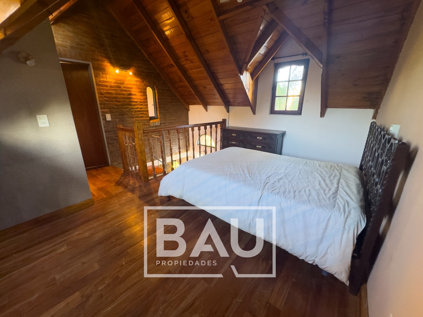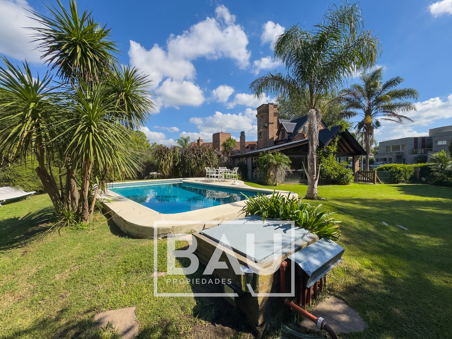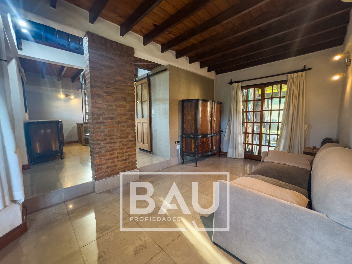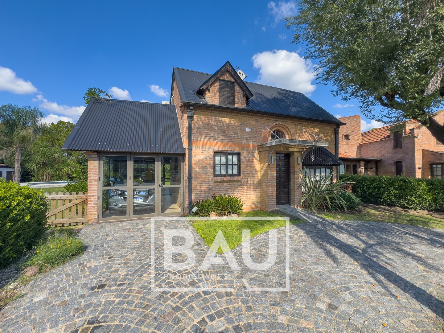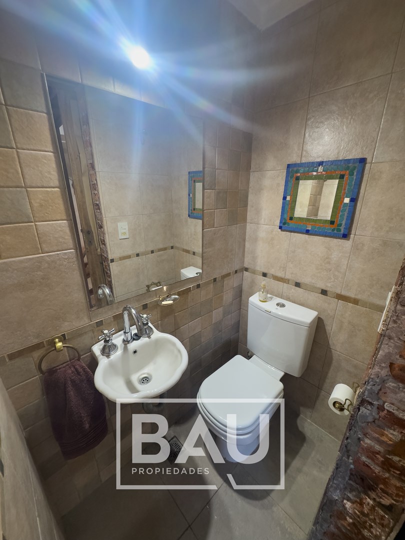 OPORTUNIDAD: CHALET EN DOBLE LOTE (790m²) – COUNTRY BANCO PROVINCIA Con dos unidades parcelarias independientes (aprox. 395m² c/u) no unificadas. Una oportunidad única para inversores: permite construir una segunda propiedad. Calidad de Materiales y Diseño Rústico: Estructura sólida con frentes de ladrillo visto, techos con tirantería de madera vista y bovedilla, y pisos de porcellanato. Entorno Consolidado y Gran Parque: Ubicación estratégica cerca de la entrada principal a calle Gorriti, con un jardín totalmente parquizado y una piscina de grandes dimensiones. ESTRUCTURA DE LA PROPIEDAD Planta Baja: Espacios Sociales y de Servicio Living: Un espacio luminoso con techos de madera vista y bovedilla que aportan calidez y amplitud. Cuenta con pisos de porcelanato y grandes ventanales de madera que lo conectan con el exterior. Está equipado con Aire Acondicionado y estufa de tiro balanceado. Una columna central de ladrillo visto sectoriza sutilmente el ambiente. Cocina: Sector de cocción compacto y funcional, con mobiliario moderno de melamina y mesada de granito negro. Comedor: Integrado a la cocina, equipado con estufa de tiro balanceado. Toilette de Recepción: Cuenta con acceso mediante puerta corrediza estilo granero, revestimientos cerámicos y detalles decorativos en guardas. Galería / Quincho Cerrado: Gran espacio versátil con doble sector de parrillas y mesada con bacha. Sus amplios ventanales permiten usarlo como área social y como cochera cubierta para un vehículo. Planta Alta: Sector Privado Dormitorio Principal: Equipado con Aire Acondicionado y un moderno placard corredizo. Segundo Dormitorio / Playroom: Espacio de generosas dimensiones (actualmente usado como dormitorio), muy luminoso. Cuenta con Aire Acondicionado, estufa de tiro balanceado y ventilador de techo. Baño Completo: Con revestimientos cerámicos. EXTERIOR Y PARQUE Piscina: Construcción tradicional de material (8x4m), íntegramente revestida en venecitas. Posee un sector de solárium, borde antideslizante/atérmico y equipo de filtrado completo. Parque: 790m² de superficie total (sumando ambos lotes) con variada forestación y parquizado. Accesos: Entrada de cortesía revestida en adoquines de pórfido. FICHA TÉCNICA Superficie de Lote: 790 m² (2 Lotes independientes de 395m² c/u). Superficie Cubierta: 90 m². Climatización: Equipos de A/A en dormitorios/playroom, living y estufas de tiro balanceado. Pisos: Porcelanato (PB) y flotantes (PA). Techos: Chapa con estructura de madera a la vista. *Las medidas, superficies y expensas consignadas en la presente descripción son aproximadas, a solo título orientativo y no son vinculantes. Las medidas y superficies reales surgirán del Título de Propiedad y de la documentación técnica correspondiente. La venta de este inmueble está sujeta a la tramitación del Código de Transferencia de Inmuebles (COTI), de conformidad con la normativa vigente (Res. AFIP 2371/08, 2439/08 y ccs.) por parte del propietario. BAU PROPIEDADES OESTE