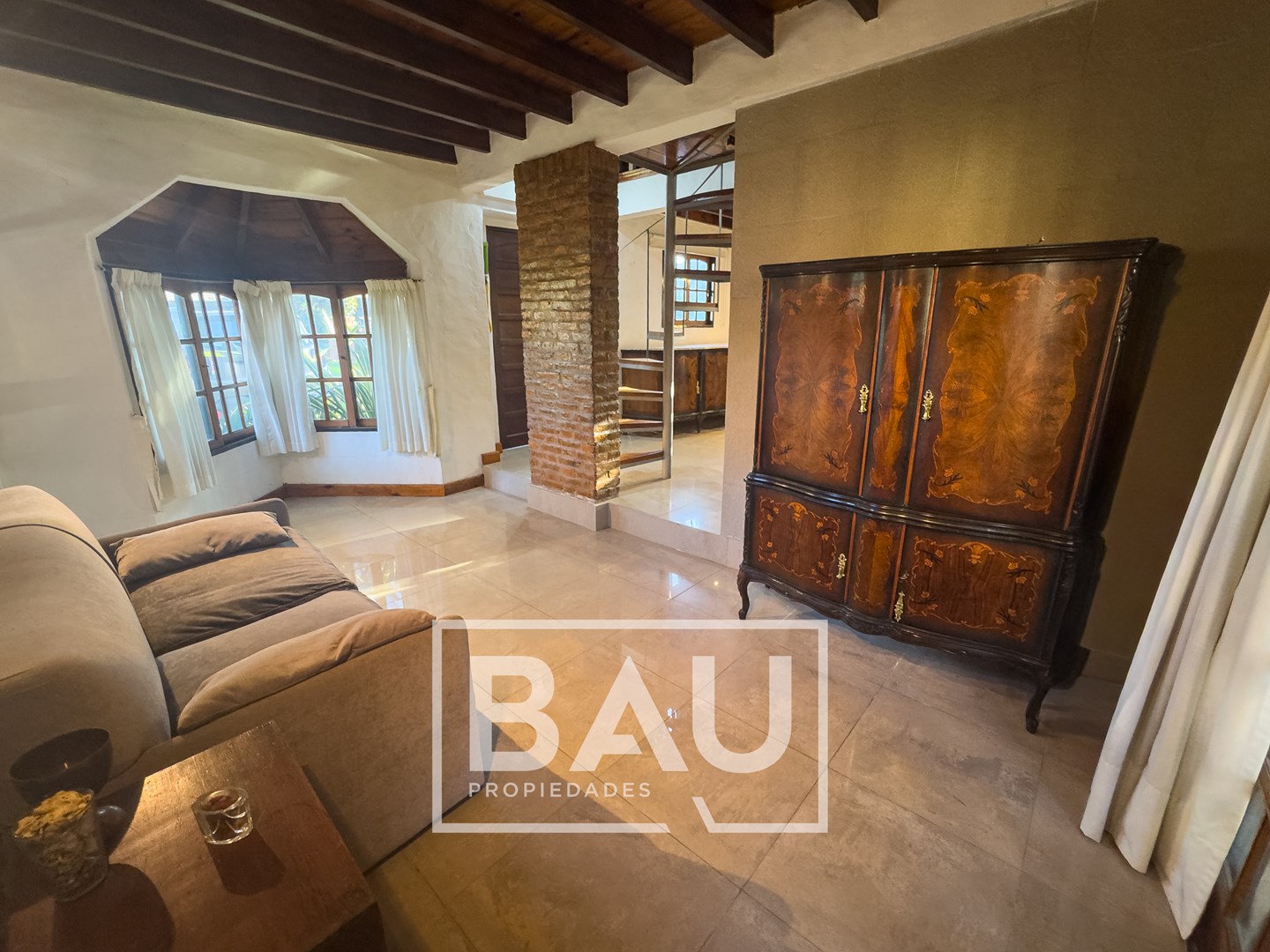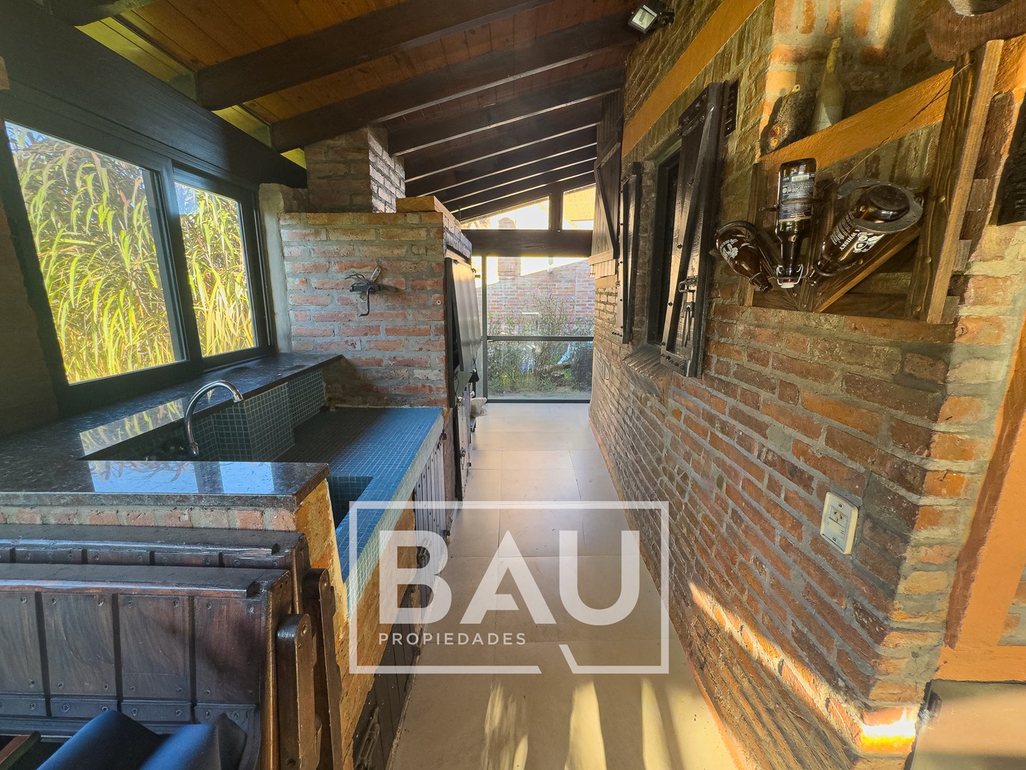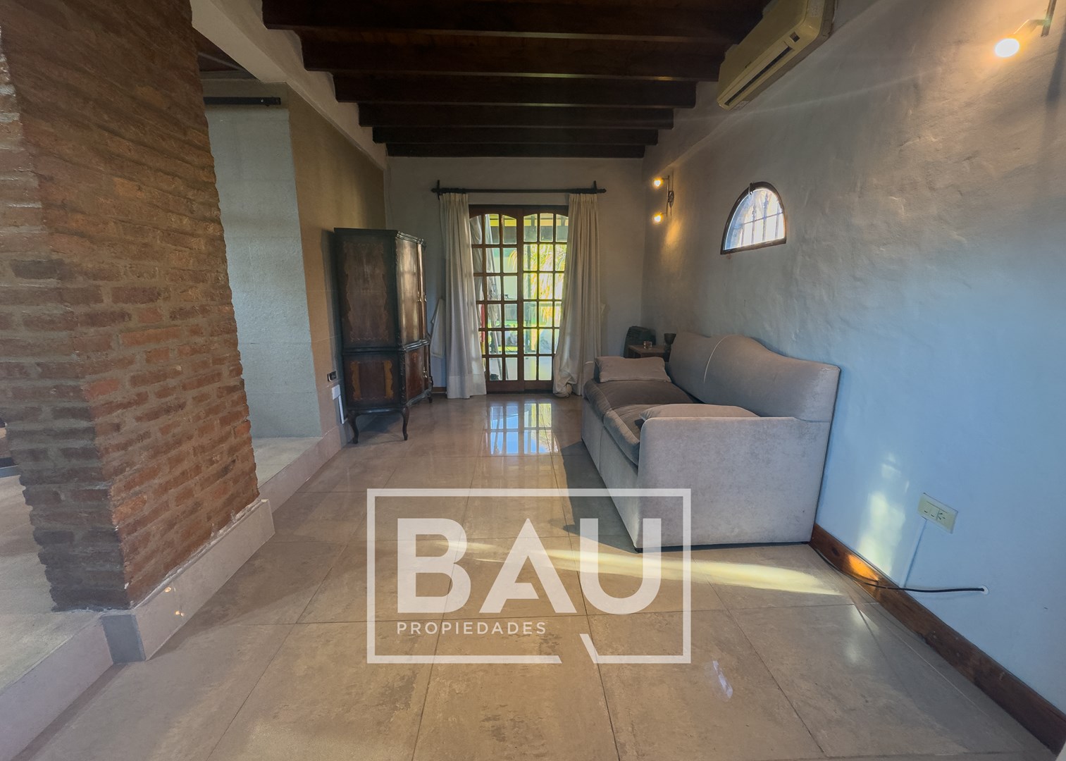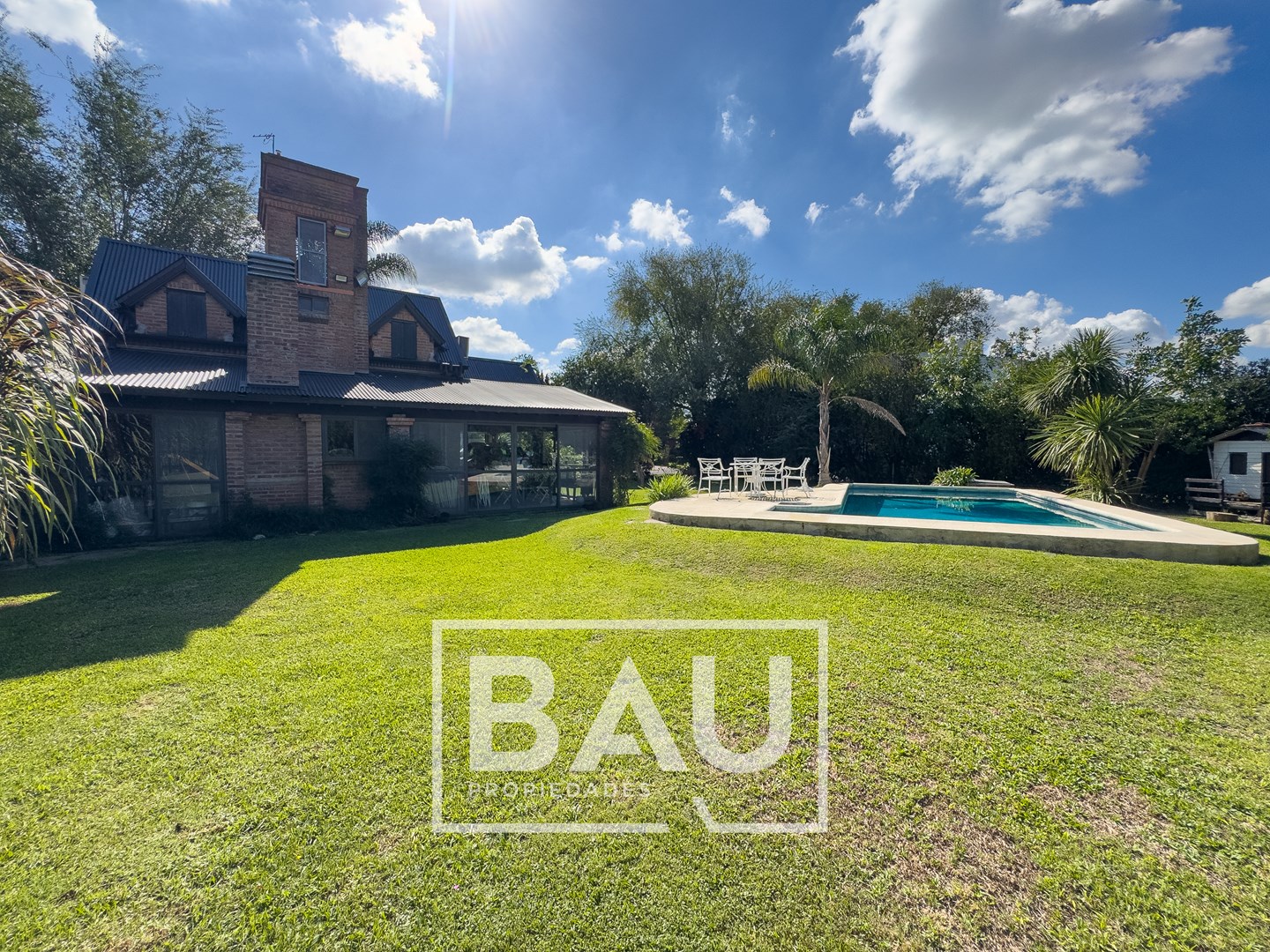 OPORTUNIDAD: CHALET EN DOBLE LOTE (790m²) – COUNTRY BANCO PROVINCIA Con dos unidades parcelarias independientes (aprox. 395m² c/u) no unificadas. Una oportunidad única para inversores: permite construir una segunda propiedad. Calidad de Materiales y Diseño Rústico: Estructura sólida con frentes de ladrillo visto, techos con tirantería de madera vista y bovedilla, y pisos de porcellanato. Entorno Consolidado y Gran Parque: Ubicación estratégica cerca de la entrada principal a calle Gorriti, con un jardín totalmente parquizado y una piscina de grandes dimensiones. ESTRUCTURA DE LA PROPIEDAD Planta Baja: Espacios Sociales y de Servicio Living: Un espacio luminoso con techos de madera vista y bovedilla que aportan calidez y amplitud. Cuenta con pisos de porcelanato y grandes ventanales de madera que lo conectan con el exterior. Está equipado con Aire Acondicionado y estufa de tiro balanceado. Una columna central de ladrillo visto sectoriza sutilmente el ambiente. Cocina: Sector de cocción compacto y funcional, con mobiliario moderno de melamina y mesada de granito negro. Comedor: Integrado a la cocina, equipado con estufa de tiro balanceado. Toilette de Recepción: Cuenta con acceso mediante puerta corrediza estilo granero, revestimientos cerámicos y detalles decorativos en guardas. Galería / Quincho Cerrado: Gran espacio versátil con doble sector de parrillas y mesada con bacha. Sus amplios ventanales permiten usarlo como área social y como cochera cubierta para un vehículo. Planta Alta: Sector Privado Dormitorio Principal: Equipado con Aire Acondicionado y un moderno placard corredizo. Segundo Dormitorio / Playroom: Espacio de generosas dimensiones (actualmente usado como dormitorio), muy luminoso. Cuenta con Aire Acondicionado, estufa de tiro balanceado y ventilador de techo. Baño Completo: Con revestimientos cerámicos. EXTERIOR Y PARQUE Piscina: Construcción tradicional de material (8x4m), íntegramente revestida en venecitas. Posee un sector de solárium, borde antideslizante/atérmico y equipo de filtrado completo. Parque: 790m² de superficie total (sumando ambos lotes) con variada forestación y parquizado. Accesos: Entrada de cortesía revestida en adoquines de pórfido. FICHA TÉCNICA Superficie de Lote: 790 m² (2 Lotes independientes de 395m² c/u). Superficie Cubierta: 90 m². Climatización: Equipos de A/A en dormitorios/playroom, living y estufas de tiro balanceado. Pisos: Porcelanato (PB) y flotantes (PA). Techos: Chapa con estructura de madera a la vista. *Las medidas, superficies y expensas consignadas en la presente descripción son aproximadas, a solo título orientativo y no son vinculantes. Las medidas y superficies reales surgirán del Título de Propiedad y de la documentación técnica correspondiente. La venta de este inmueble está sujeta a la tramitación del Código de Transferencia de Inmuebles (COTI), de conformidad con la normativa vigente (Res. AFIP 2371/08, 2439/08 y ccs.) por parte del propietario. BAU PROPIEDADES OESTE