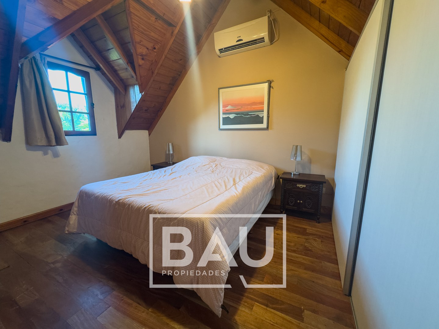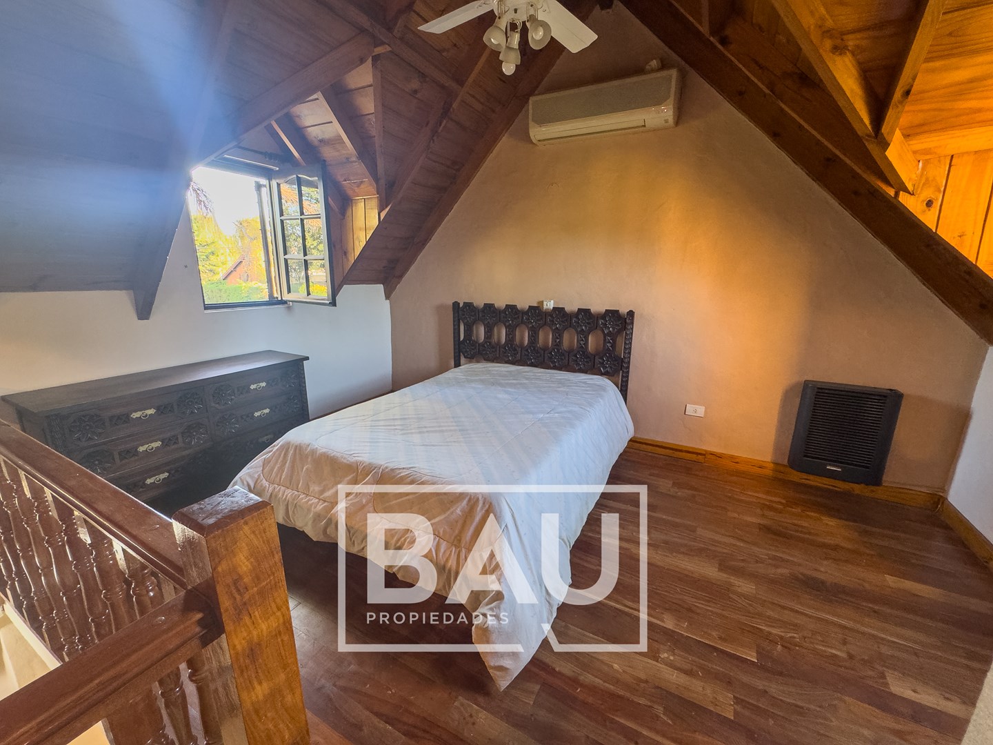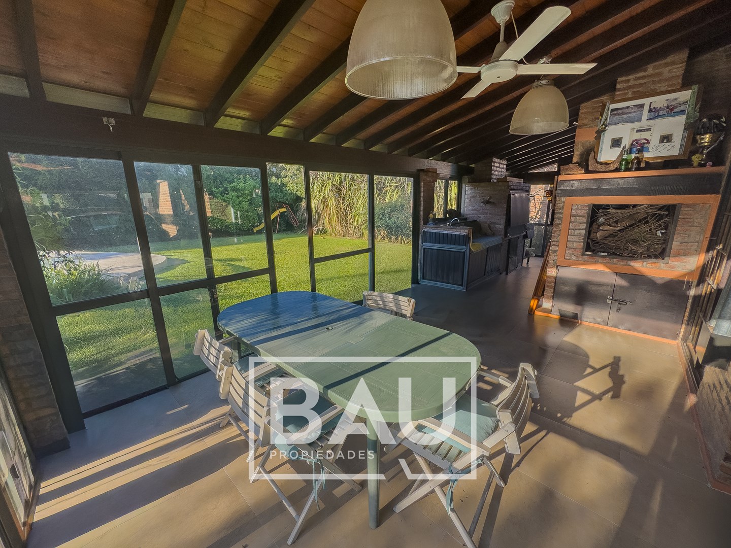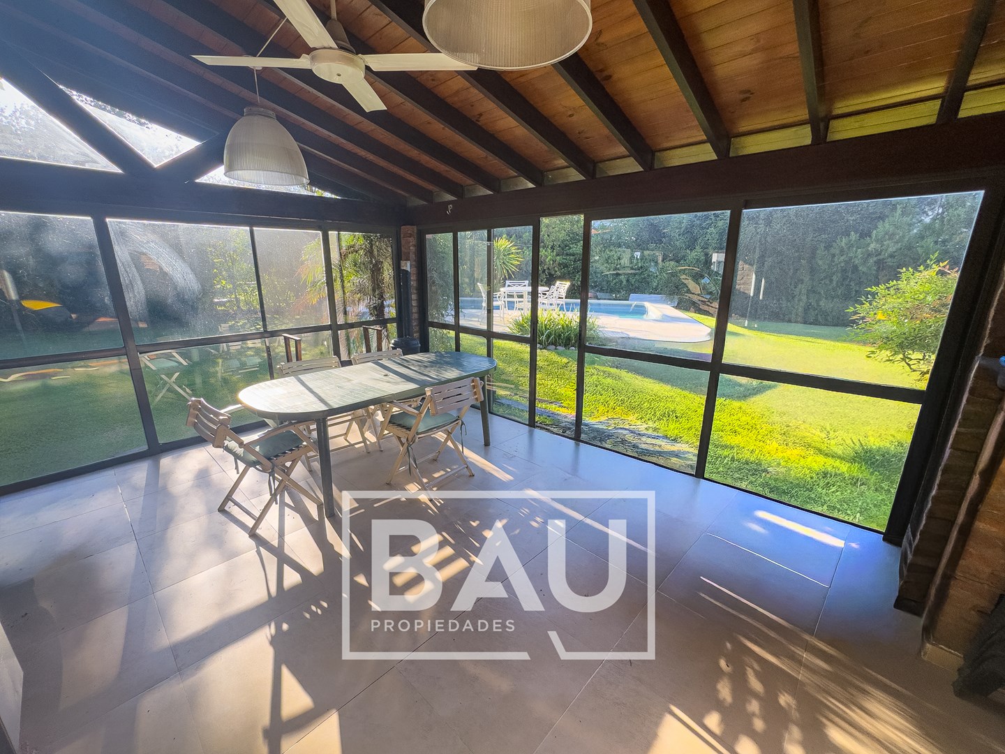 OPORTUNIDAD: CHALET EN DOBLE LOTE (790m²) – COUNTRY BANCO PROVINCIA Con dos unidades parcelarias independientes (aprox. 395m² c/u) no unificadas. Una oportunidad única para inversores: permite construir una segunda propiedad. Calidad de Materiales y Diseño Rústico: Estructura sólida con frentes de ladrillo visto, techos con tirantería de madera vista y bovedilla, y pisos de porcellanato. Entorno Consolidado y Gran Parque: Ubicación estratégica cerca de la entrada principal a calle Gorriti, con un jardín totalmente parquizado y una piscina de grandes dimensiones. ESTRUCTURA DE LA PROPIEDAD Planta Baja: Espacios Sociales y de Servicio Living: Un espacio luminoso con techos de madera vista y bovedilla que aportan calidez y amplitud. Cuenta con pisos de porcelanato y grandes ventanales de madera que lo conectan con el exterior. Está equipado con Aire Acondicionado y estufa de tiro balanceado. Una columna central de ladrillo visto sectoriza sutilmente el ambiente. Cocina: Sector de cocción compacto y funcional, con mobiliario moderno de melamina y mesada de granito negro. Comedor: Integrado a la cocina, equipado con estufa de tiro balanceado. Toilette de Recepción: Cuenta con acceso mediante puerta corrediza estilo granero, revestimientos cerámicos y detalles decorativos en guardas. Galería / Quincho Cerrado: Gran espacio versátil con doble sector de parrillas y mesada con bacha. Sus amplios ventanales permiten usarlo como área social y como cochera cubierta para un vehículo. Planta Alta: Sector Privado Dormitorio Principal: Equipado con Aire Acondicionado y un moderno placard corredizo. Segundo Dormitorio / Playroom: Espacio de generosas dimensiones (actualmente usado como dormitorio), muy luminoso. Cuenta con Aire Acondicionado, estufa de tiro balanceado y ventilador de techo. Baño Completo: Con revestimientos cerámicos. EXTERIOR Y PARQUE Piscina: Construcción tradicional de material (8x4m), íntegramente revestida en venecitas. Posee un sector de solárium, borde antideslizante/atérmico y equipo de filtrado completo. Parque: 790m² de superficie total (sumando ambos lotes) con variada forestación y parquizado. Accesos: Entrada de cortesía revestida en adoquines de pórfido. FICHA TÉCNICA Superficie de Lote: 790 m² (2 Lotes independientes de 395m² c/u). Superficie Cubierta: 90 m². Climatización: Equipos de A/A en dormitorios/playroom, living y estufas de tiro balanceado. Pisos: Porcelanato (PB) y flotantes (PA). Techos: Chapa con estructura de madera a la vista. *Las medidas, superficies y expensas consignadas en la presente descripción son aproximadas, a solo título orientativo y no son vinculantes. Las medidas y superficies reales surgirán del Título de Propiedad y de la documentación técnica correspondiente. La venta de este inmueble está sujeta a la tramitación del Código de Transferencia de Inmuebles (COTI), de conformidad con la normativa vigente (Res. AFIP 2371/08, 2439/08 y ccs.) por parte del propietario. BAU PROPIEDADES OESTE