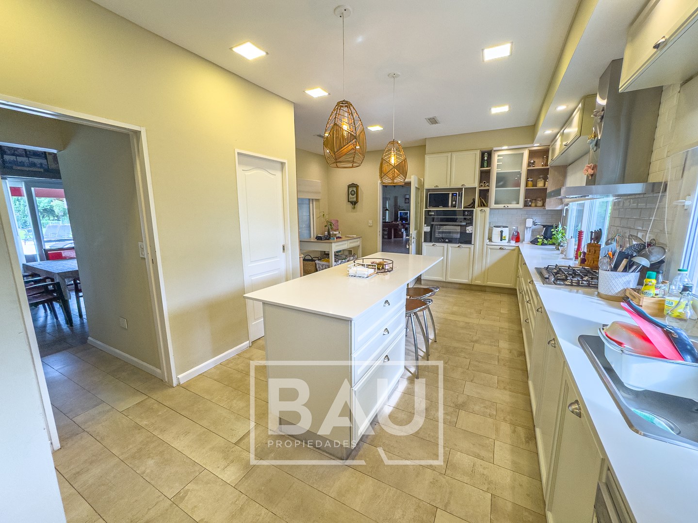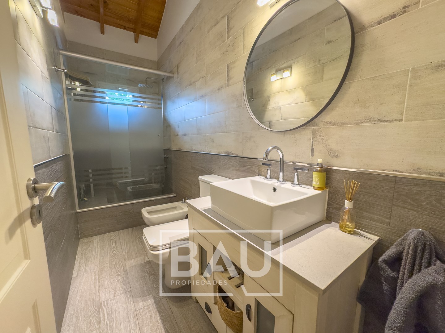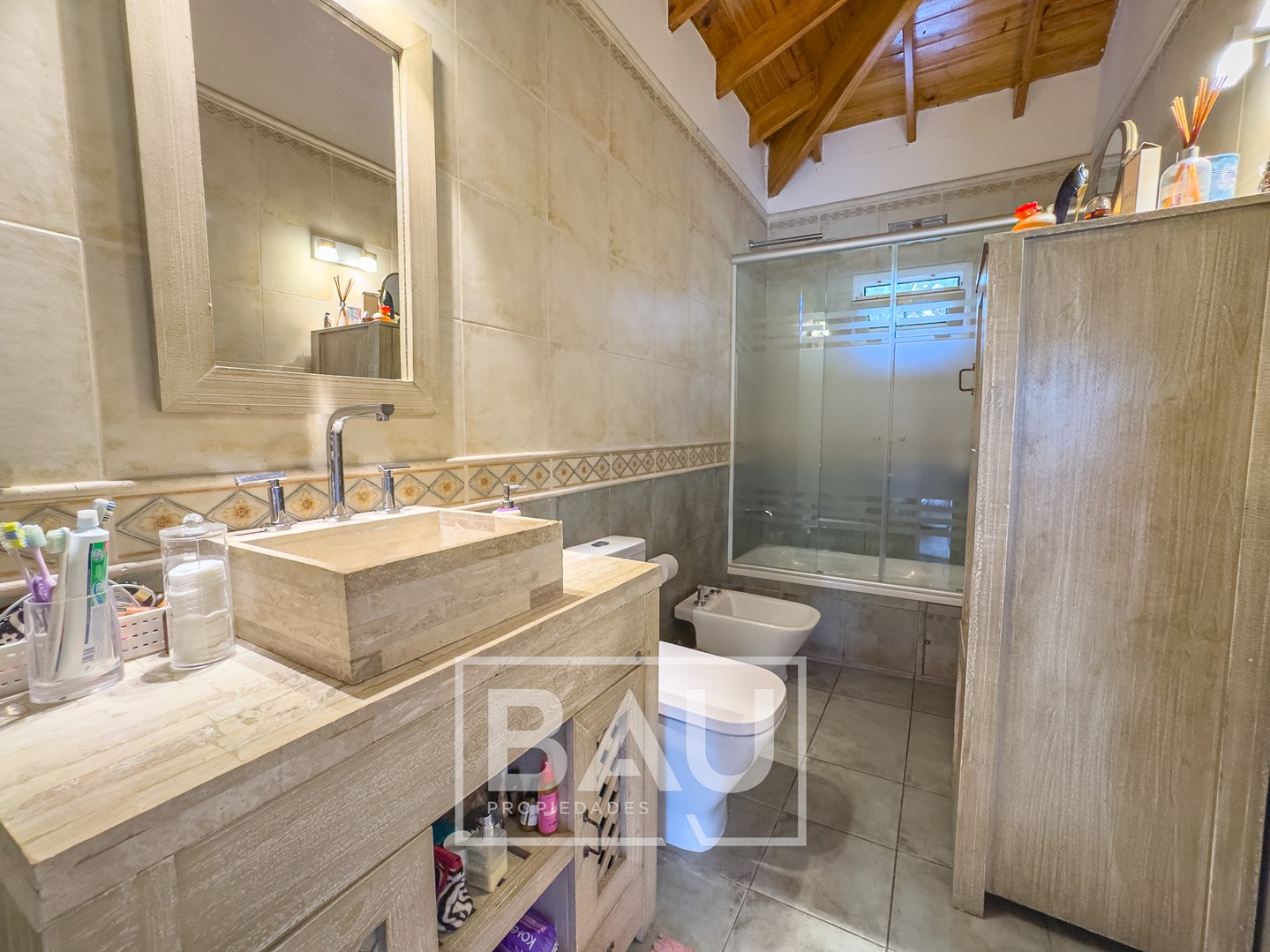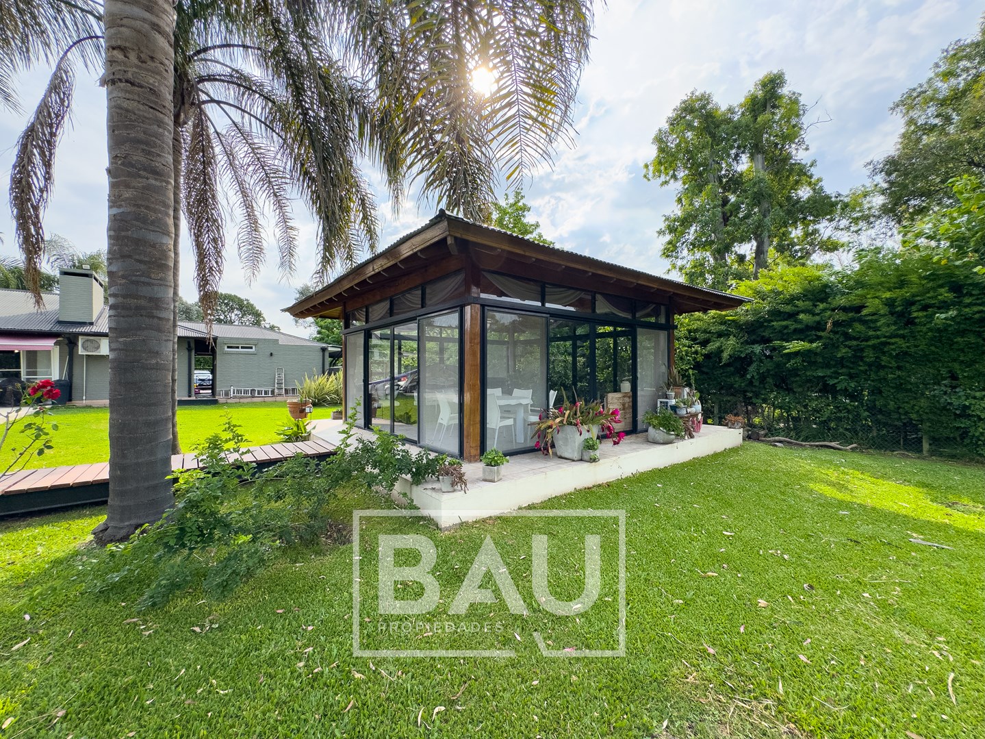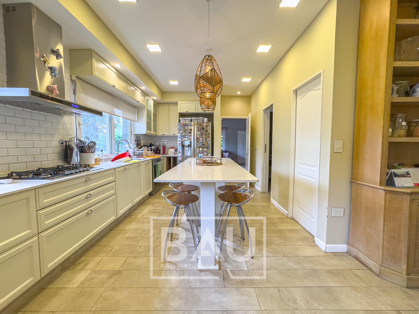 BAU PROPIEDADES – VENTA – CASA EN UNA PLANTA – 4 DORMITORIOS – EXCELENTE CONSTRUCCIÓN – COUNTRY CLUB SAN DIEGO Sólido chalet tradicional desarrollado íntegramente en una planta, implantado sobre un amplio lote de 1.500 m², con muy buena orientación y un entorno consolidado. Una propiedad que se destaca por su calidad constructiva, funcionalidad y luminosidad en todos sus ambientes. Al ingresar, un hall de recepción da paso a un amplio living comedor con barra, grandes ventanales al jardín y excelente entrada de luz natural. La casa cuenta con calefacción central por aire mediante dos calderas y aire acondicionado en todos los ambientes, garantizando confort durante todo el año. La cocina se presenta muy bien equipada, con mesadas de Silestone, campana de acero, horno empotrado, gran espacio de guardado y despensa. Conecta de manera práctica con el sector social y el quincho. El quincho cerrado funciona como un verdadero segundo estar, con parrilla de acero con puerta guillotina y horno pizzero Tromen. La distribución privada ofrece cuatro dormitorios. El dormitorio principal es en suite con vestidor y dos baños completos, brindando comodidad y privacidad. Dos dormitorios adicionales con placard comparten un baño completo, y se suma un cuarto dormitorio que puede utilizarse como habitación de huéspedes o escritorio. Además, cuenta con un playroom independiente. En el exterior, el jardín parquizado se disfruta plenamente. La piscina climatizada, revestida en venecitas, mide aproximadamente 12 x 5 metros y cuenta con solárium de piso antideslizante. Se suma un baño de pileta con vestuario, jardín de invierno, gazebo vidriado con vista abierta al parque, toldo corredizo y riego automático. La propiedad dispone de cochera cubierta para dos autos, espacio de guardado adicional, galpón y sala de máquinas. Como valor agregado, cuenta con grupo electrógeno a gas de 40 kVA y cortinas blackout automatizadas. Todas las aberturas son de PVC con DVH, optimizando aislamiento térmico y acústico. Una casa muy completa, bien mantenida y lista para mudarse, ideal para quienes buscan vivir en una sola planta, con amplios espacios interiores y exteriores, dentro de un entorno seguro y consolidado. Consultanos para más información o para coordinar una visita. Esta propiedad merece ser recorrida para apreciar cada detalle. *La información comercial incluida representa material de carácter informativo y/o ilustrativo, pudiendo no ser exacta, estar sujeta a errores, omisiones y cambios, incluyendo el precio o la retirada de la oferta sin previo aviso. BAU PROPIEDADES SAN DIEGO