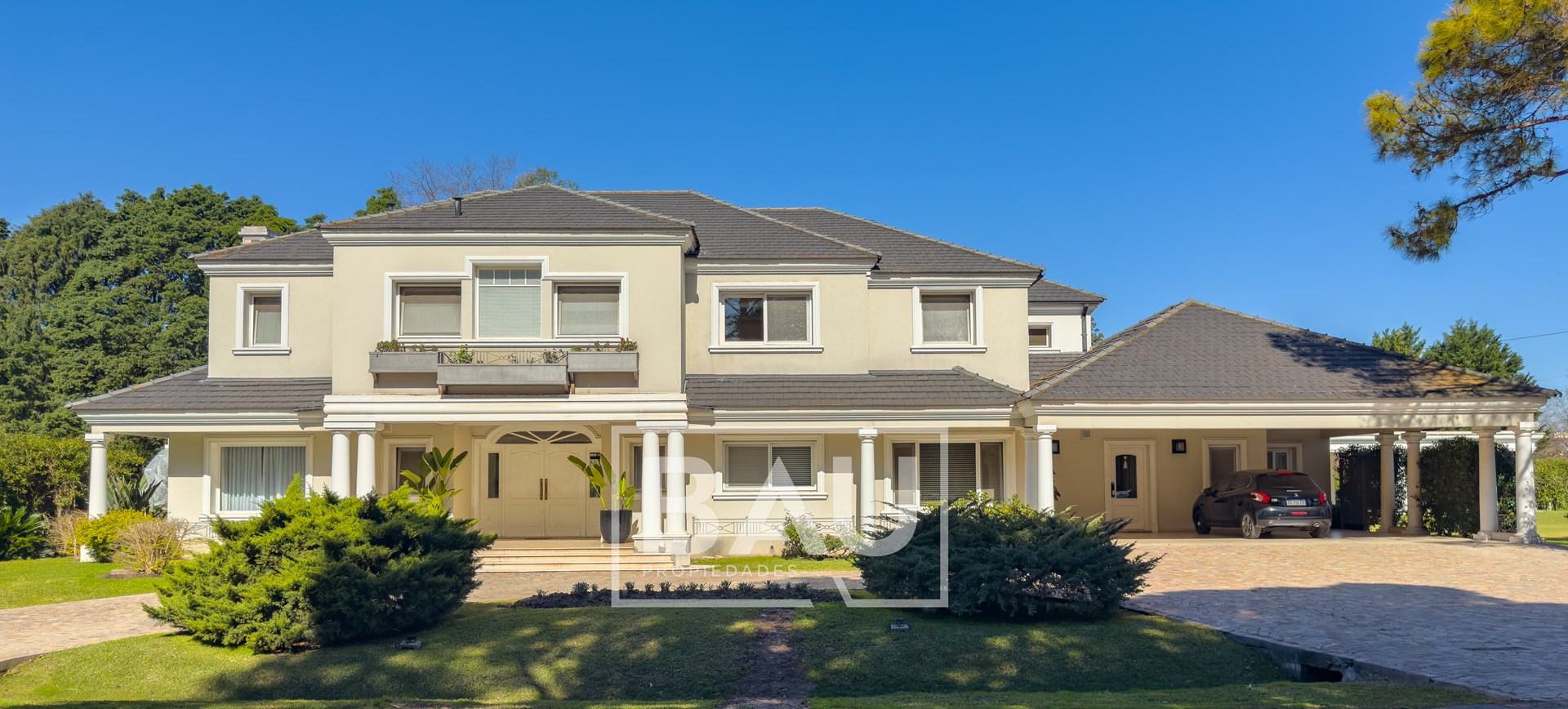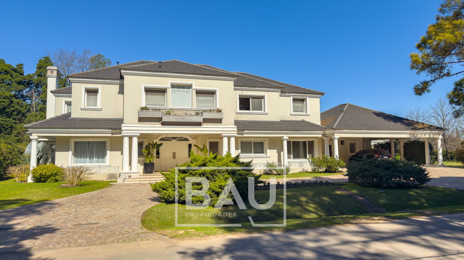 BAU PROPIEDADES - VENTA - CASA ESTILO CLÁSICO DE CATEGORÍA - 7 AMBIENTES - 4 DORMITORIOS EN SUITE CON VESTIDOR - QUINCHO COMPLETO - JACUZZI - PISCINA CON BORDE INFINITO - COUNTRY CLUB SAN DIEGO Exclusiva casa de estilo clásico desarrollada sobre lote de 1.912 m², con una superficie cubierta de 765 m², construida con excelentes terminaciones y diseño de primera categoría pensada en cada detalle para brindando diseño y funcionalidad. La propiedad se organiza en dos plantas. En planta baja: Encontramos el hall de recepción, amplio living muy luminoso con hogar a gas y comedor formal integrado, cuenta con pisos y escalera de mármol de Carrara. Toilette de recepción, armarios de guardado y un dormitorio en suite con placard amplio y piso de madera, ideal para huéspedes o de uso diario. Cocina equipada con isla y comedor diario, mesadas de silestone, horno empotrado, campana de acero y mobiliario a medida. Desde el living y la cocina se accede al quincho con parrilla, barra, lavatorio, cocina completa y excelentes vistas al parque. Área de servicio con acceso independiente desde la cochera y escalera de servicio, desde el pasillo de distribución que cuenta con múltiples espacios de guardado se encuentra la dependencia de servicio con baño completo, lavadero y un sector de spa con gran jacuzzi y un baño completo con ducha. En planta alta: Al subir se encuentra el hall de distribución, playroom/escritorio y baulera. Tres dormitorios, todos en suite con vestidor. El principal se destaca por su amplitud, gran vestidor y baño compartimentado con hidromasaje y ducha. Los otros dos dormitorios también cuentan con baños completos con hidro y ducha. Pisos de madera hidro laqueados en toda la planta alta. Excelente luminosidad natural y aberturas de PVC con doble vidrio hermético en toda la casa. Cuenta con calefacción y refrigeración central, losa radiante y aire acondicionado split en todos los ambientes. En Exteriores: Galería semi cubierta, hermoso jardín parquizado con riego automático, y piscina de 11 x 5,5 metros, revestida en venecitas, con borde infinito y solárium. Cochera cubierta para tres autos con ingreso directo a la casa. ¡No pierdas la oportunidad de disfrutar de este espectacular chalet de categoría en el exclusivo Country Club San Diego! Para más información y coordinar una visita, no dudes en contactarnos. BAU PROPIEDADES SAN DIEGO Tu próximo hogar te está esperando.