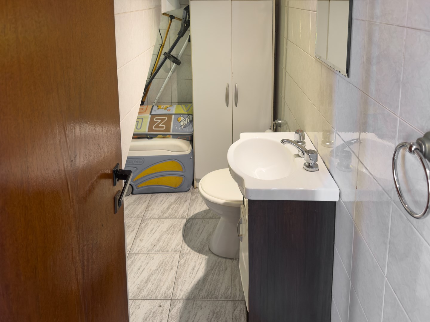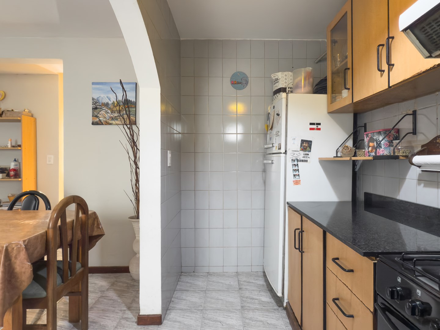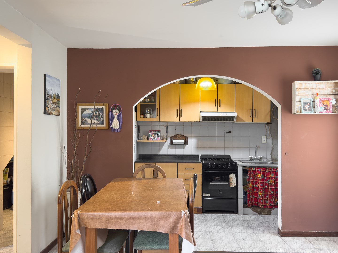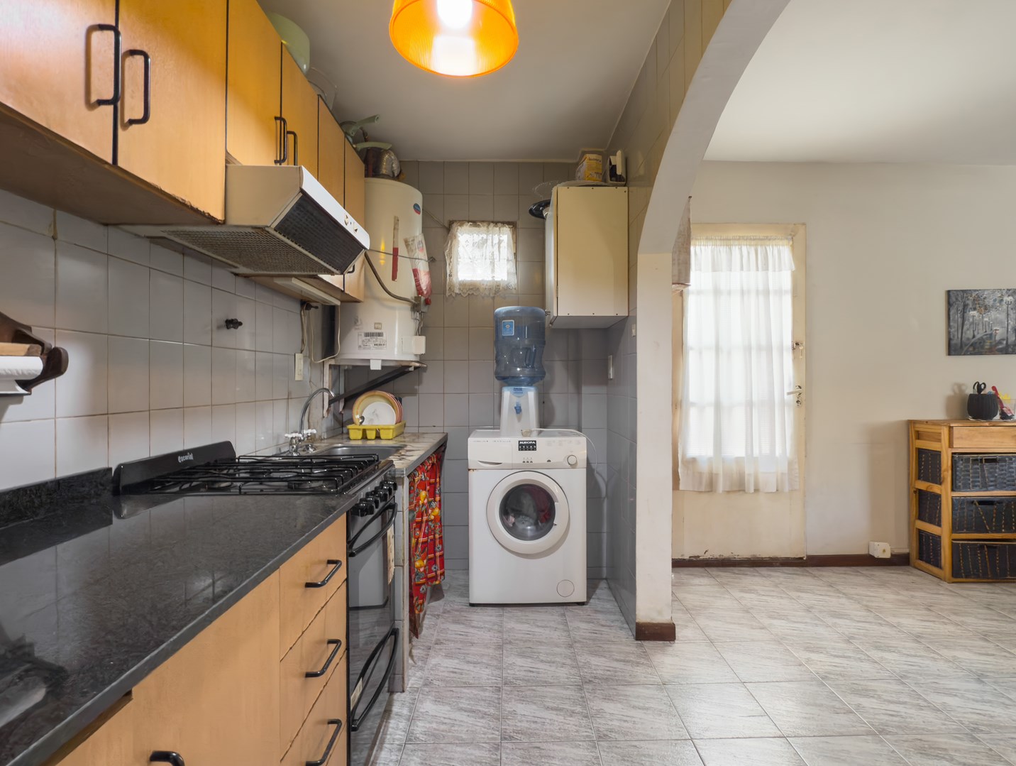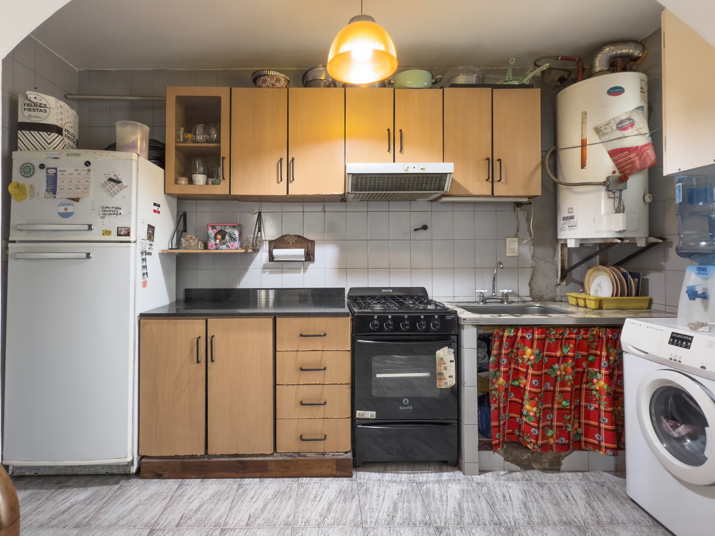 Cocina integrada con termotanque, cocina a gas y espacio para lavarropas. Toilette de recepción.