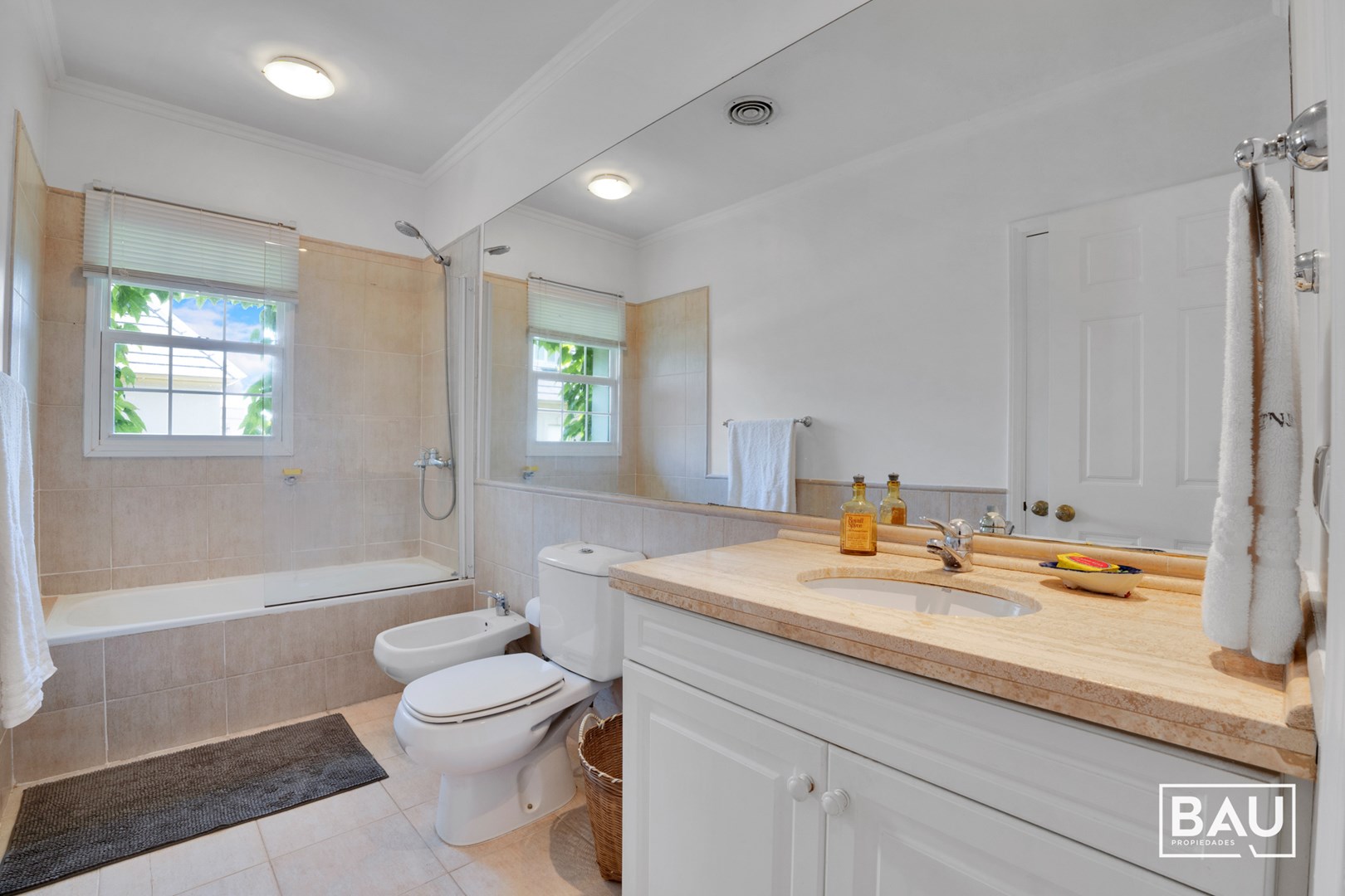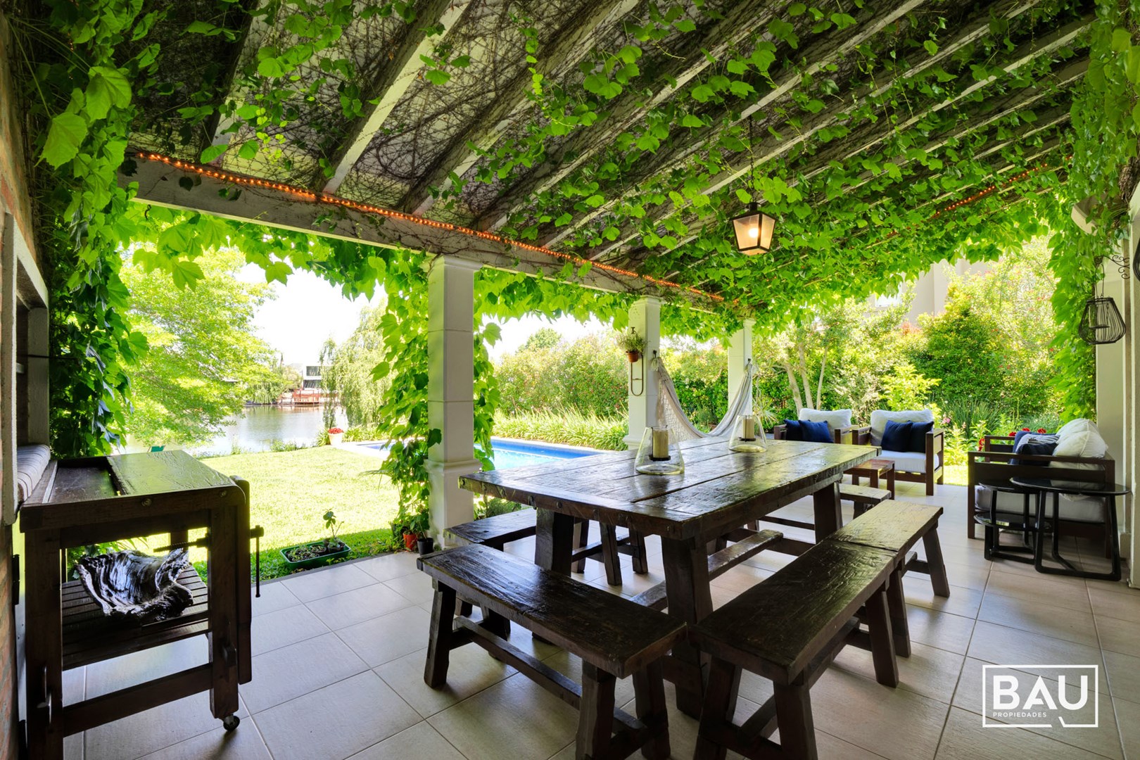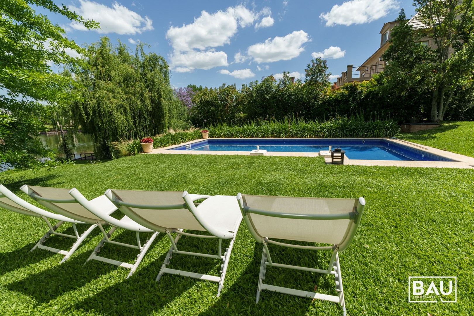VENTA - CASA AL LAGO CENTRAL - LOS CASTORES - NORDELTA. DISEÑO FUNCIONAL, LUMINOSA Y BIEN DISTRIBUIDA Excepcional casa al lago sobre un lote de 1115m2 con muelle propio. Excelente vivienda desarrollada en dos plantas, con una distribución muy funcional que combina espacios amplios, buena circulación y gran luminosidad. Planta baja: Ingreso a un amplio hall de recepción que organiza el acceso a los principales ambientes. Gran living comedor con excelentes dimensiones y salida directa al exterior, ideal para el uso diario y reuniones sociales. Cocina independiente, cómoda y bien resuelta, con espacio de guardado y circulación fluida hacia el área social. Dormitorio o escritorio en planta baja, ideal como cuarto de huéspedes o espacio de trabajo. Baño completo y toilette de recepción. Sector de lavadero independiente y dependencias de servicio, con acceso funcional y discreto. Planta alta: Hall distribuidor que conecta los dormitorios. Dormitorio principal en suite, con vestidor y baño completo, generando un espacio privado y confortable. Dormitorios secundarios de buenas dimensiones, con placares y excelente luz natural. Baño completo compartido. Espacios bien proporcionados, pensados para el confort familiar. Galería y Jardín GALERÍA Y JARDÍN La casa se abre hacia una galería amplia y sumamente acogedora, concebida como un verdadero living exterior. Cubierta por una pérgola completamente vestida de vegetación natural, genera un microclima fresco y sombreado, aportando carácter, privacidad y una estética única durante todo el año. La galería cuenta con sector de estar y comedor, ideal para reuniones sociales o momentos de relax, y una parrilla integrada, perfectamente ubicada para disfrutar encuentros al aire libre sin perder conexión con el interior de la casa. Las grandes aberturas permiten una continuidad fluida entre la galería, el living y la cocina, potenciando la vida social y familiar. El jardín parquizado, de gran superficie y con una cuidada forestación, ofrece múltiples espacios de disfrute. Se destaca la pileta rodeada de verde, con excelente asoleamiento y visuales abiertas, generando un entorno de absoluta tranquilidad. Hacia el fondo del lote, la propiedad cuenta con salida directa al lago, con un muelle propio que invita a disfrutar del paisaje, del contacto con el agua y de momentos únicos al atardecer. Un espacio íntimo, natural y muy bien logrado, que combina descanso, recreación y vistas privilegiadas. En conjunto, la galería y el jardín conforman un exterior excepcional, pensado para vivirlo todo el año, donde la vegetación, el agua y la arquitectura se integran de manera armónica. La propiedad se destaca por su diseño equilibrado, ambientes bien definidos y una circulación muy lograda entre áreas públicas y privadas, lo que la convierte en una casa ideal para familia, con posibilidad de home office o cuarto adicional en planta baja. SOBRE EL BARRIO LOS CASTORES: 3 canchas de fútbol. Canchas de handball, vóley y básquet. 10 canchas de tenis (cemento y ladrillo molido). Cancha de paddle. Grandes parques, lagunas y espacios verdes. Ubicación privilegiada, próxima a la entrada principal, Jumbo, Centro Médico y Centro Comercial Nordelta. Seguridad 24 hs con patrullaje. Las medidas (tanto totales como parciales), superficies, m2 y proporciones indicadas en el presente son aproximadas y sujetas a verificación, variación y/o ajuste. El precio de la presente operación y/o de las expensas aquí indicadas están sujetos a modificación sin previo aviso. BAU PROPIEDADES NORDELTA Cristian Bau CMCPSI 6452 / CUCICBA 5405.