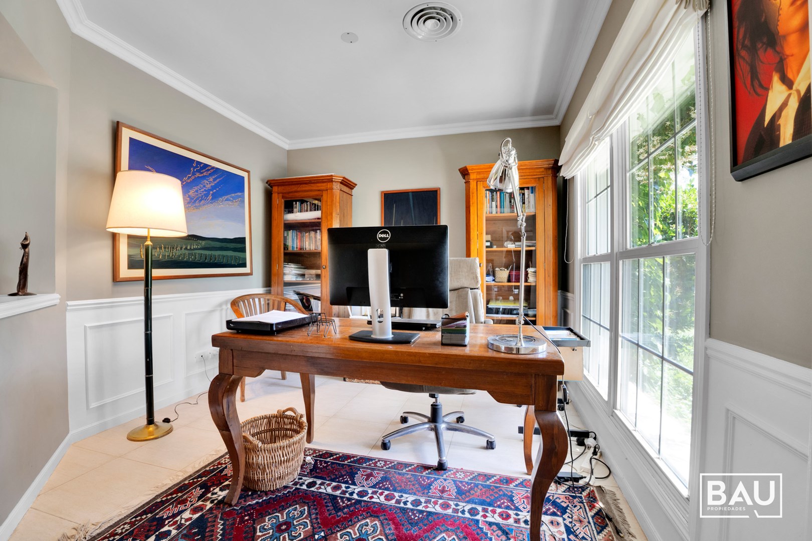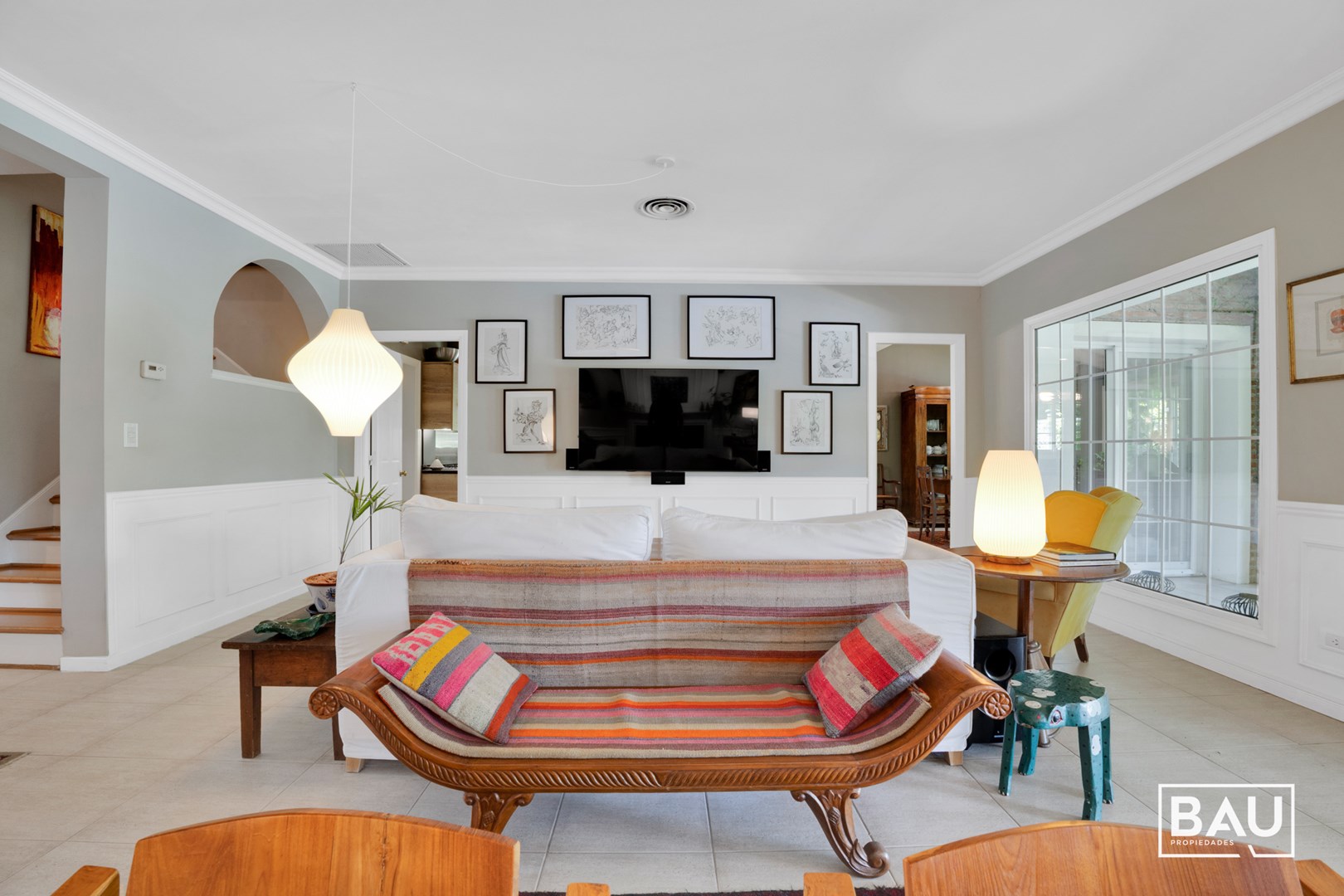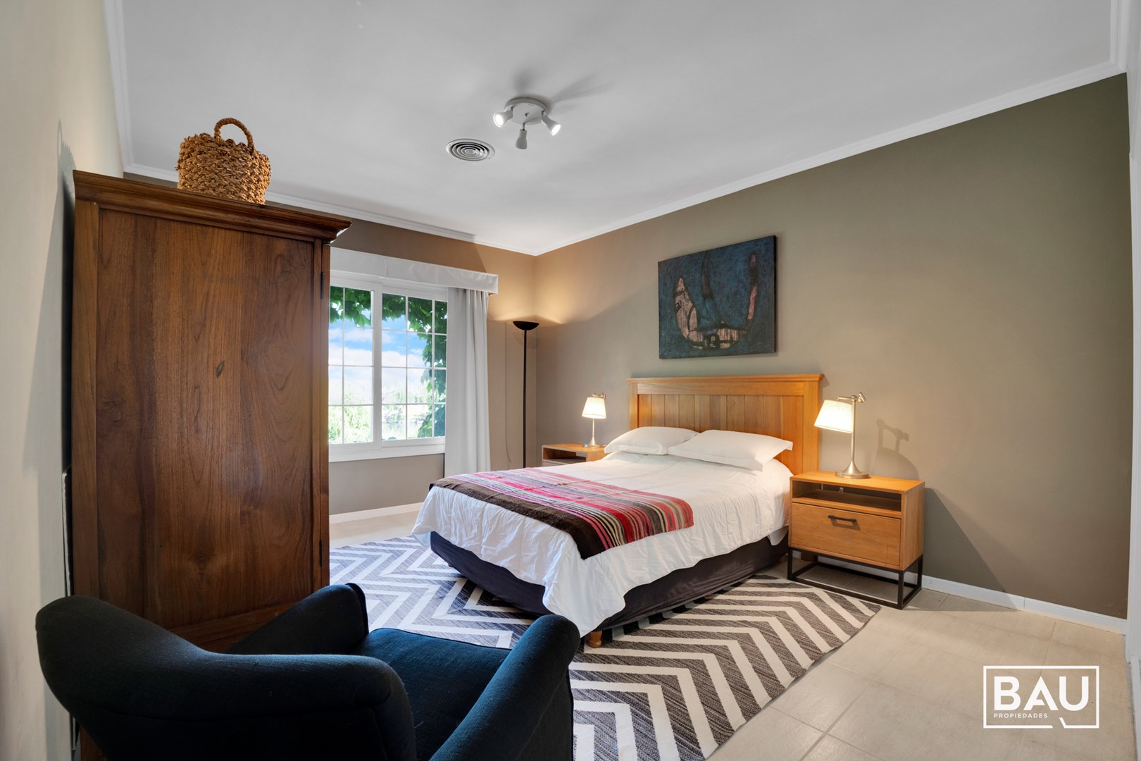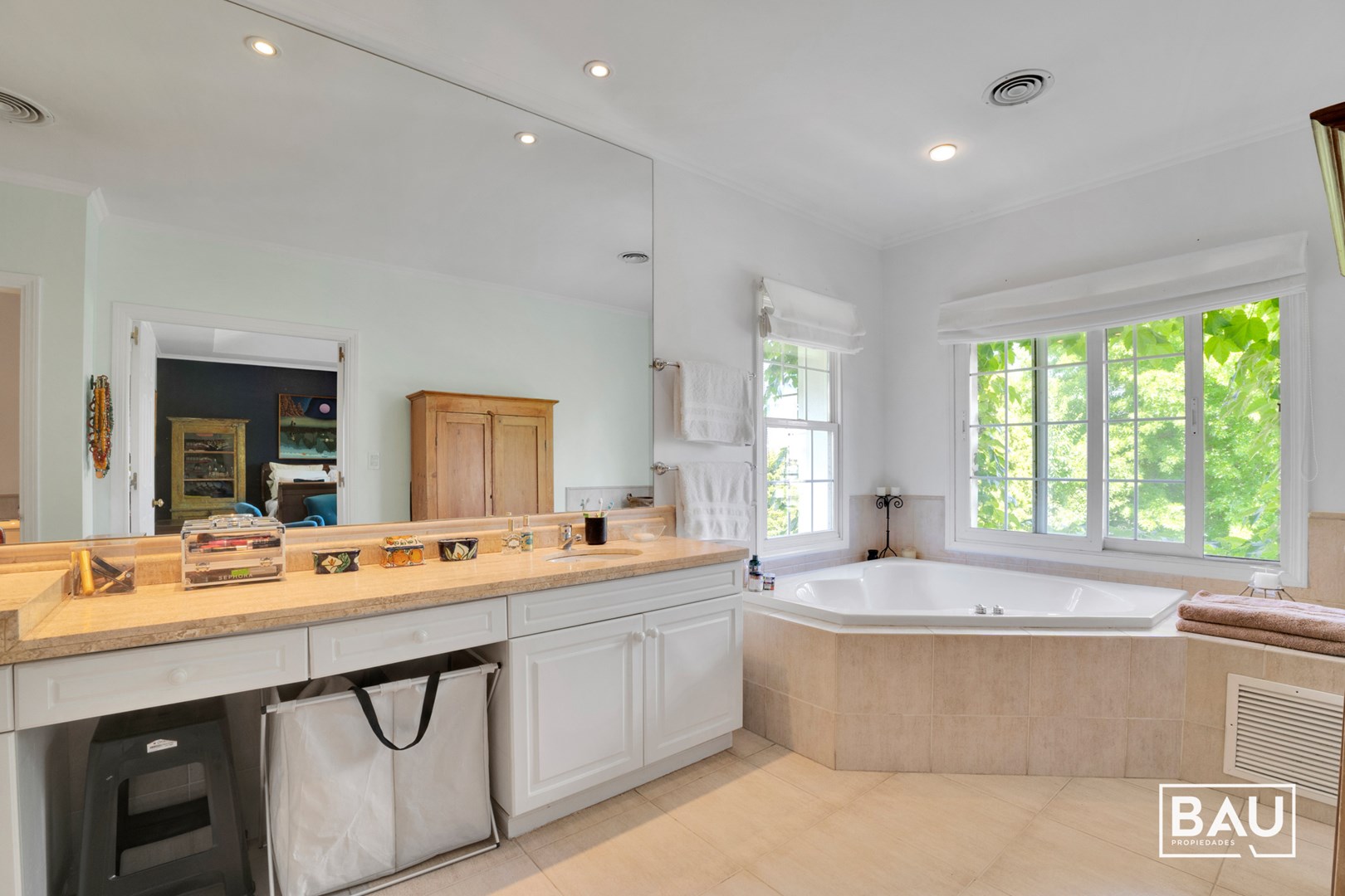 VENTA - CASA AL LAGO CENTRAL - LOS CASTORES - NORDELTA. DISEÑO FUNCIONAL, LUMINOSA Y BIEN DISTRIBUIDA Excepcional casa al lago sobre un lote de 1115m2 con muelle propio. Excelente vivienda desarrollada en dos plantas, con una distribución muy funcional que combina espacios amplios, buena circulación y gran luminosidad. Planta baja: Ingreso a un amplio hall de recepción que organiza el acceso a los principales ambientes. Gran living comedor con excelentes dimensiones y salida directa al exterior, ideal para el uso diario y reuniones sociales. Cocina independiente, cómoda y bien resuelta, con espacio de guardado y circulación fluida hacia el área social. Dormitorio o escritorio en planta baja, ideal como cuarto de huéspedes o espacio de trabajo. Baño completo y toilette de recepción. Sector de lavadero independiente y dependencias de servicio, con acceso funcional y discreto. Planta alta: Hall distribuidor que conecta los dormitorios. Dormitorio principal en suite, con vestidor y baño completo, generando un espacio privado y confortable. Dormitorios secundarios de buenas dimensiones, con placares y excelente luz natural. Baño completo compartido. Espacios bien proporcionados, pensados para el confort familiar. Galería y Jardín GALERÍA Y JARDÍN La casa se abre hacia una galería amplia y sumamente acogedora, concebida como un verdadero living exterior. Cubierta por una pérgola completamente vestida de vegetación natural, genera un microclima fresco y sombreado, aportando carácter, privacidad y una estética única durante todo el año. La galería cuenta con sector de estar y comedor, ideal para reuniones sociales o momentos de relax, y una parrilla integrada, perfectamente ubicada para disfrutar encuentros al aire libre sin perder conexión con el interior de la casa. Las grandes aberturas permiten una continuidad fluida entre la galería, el living y la cocina, potenciando la vida social y familiar. El jardín parquizado, de gran superficie y con una cuidada forestación, ofrece múltiples espacios de disfrute. Se destaca la pileta rodeada de verde, con excelente asoleamiento y visuales abiertas, generando un entorno de absoluta tranquilidad. Hacia el fondo del lote, la propiedad cuenta con salida directa al lago, con un muelle propio que invita a disfrutar del paisaje, del contacto con el agua y de momentos únicos al atardecer. Un espacio íntimo, natural y muy bien logrado, que combina descanso, recreación y vistas privilegiadas. En conjunto, la galería y el jardín conforman un exterior excepcional, pensado para vivirlo todo el año, donde la vegetación, el agua y la arquitectura se integran de manera armónica. La propiedad se destaca por su diseño equilibrado, ambientes bien definidos y una circulación muy lograda entre áreas públicas y privadas, lo que la convierte en una casa ideal para familia, con posibilidad de home office o cuarto adicional en planta baja. SOBRE EL BARRIO LOS CASTORES: 3 canchas de fútbol. Canchas de handball, vóley y básquet. 10 canchas de tenis (cemento y ladrillo molido). Cancha de paddle. Grandes parques, lagunas y espacios verdes. Ubicación privilegiada, próxima a la entrada principal, Jumbo, Centro Médico y Centro Comercial Nordelta. Seguridad 24 hs con patrullaje. Las medidas (tanto totales como parciales), superficies, m2 y proporciones indicadas en el presente son aproximadas y sujetas a verificación, variación y/o ajuste. El precio de la presente operación y/o de las expensas aquí indicadas están sujetos a modificación sin previo aviso. BAU PROPIEDADES NORDELTA Cristian Bau CMCPSI 6452 / CUCICBA 5405.