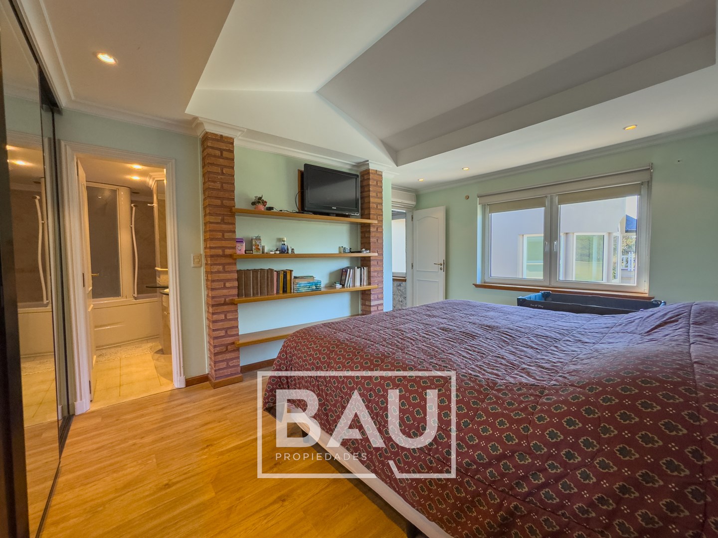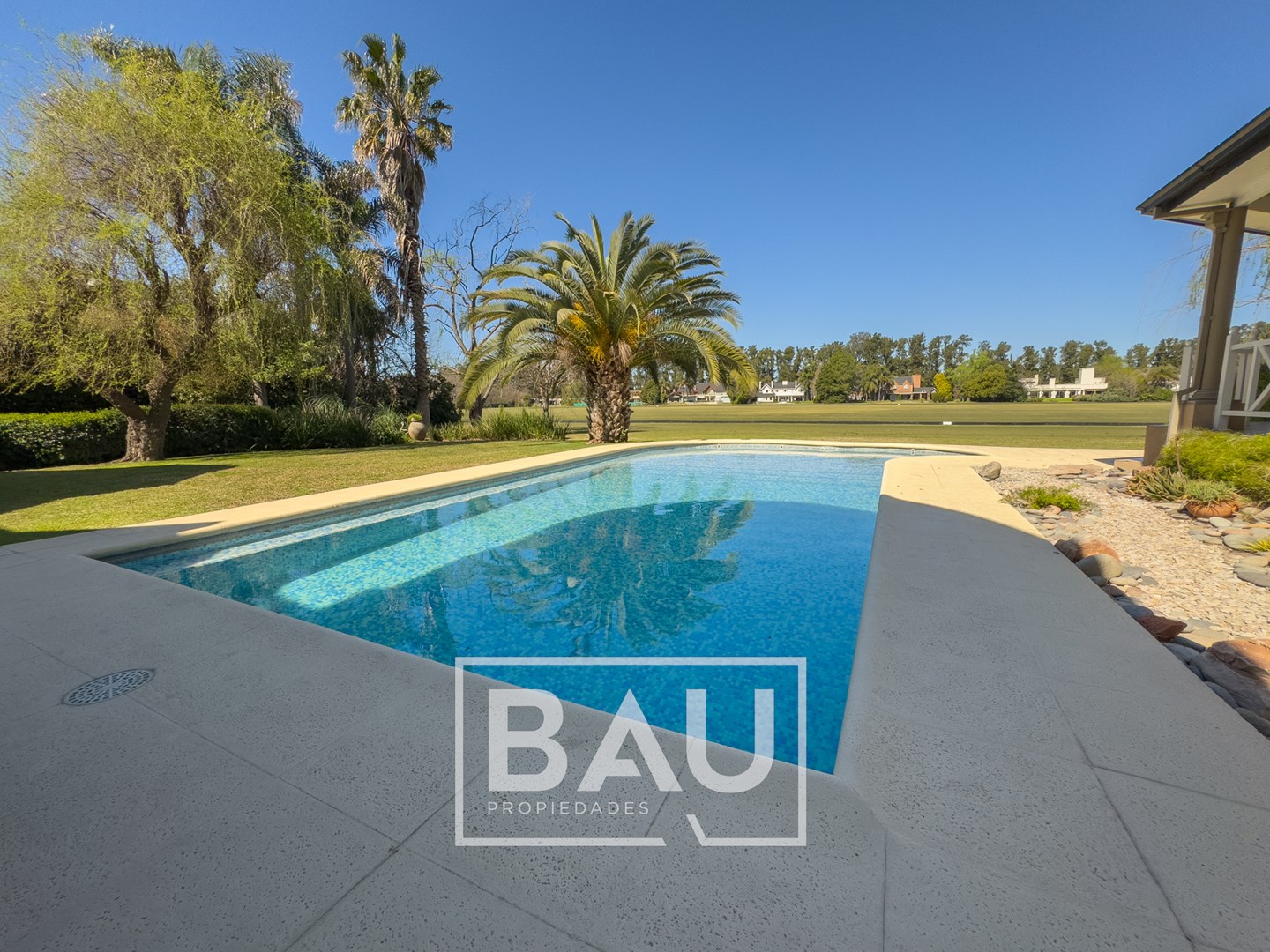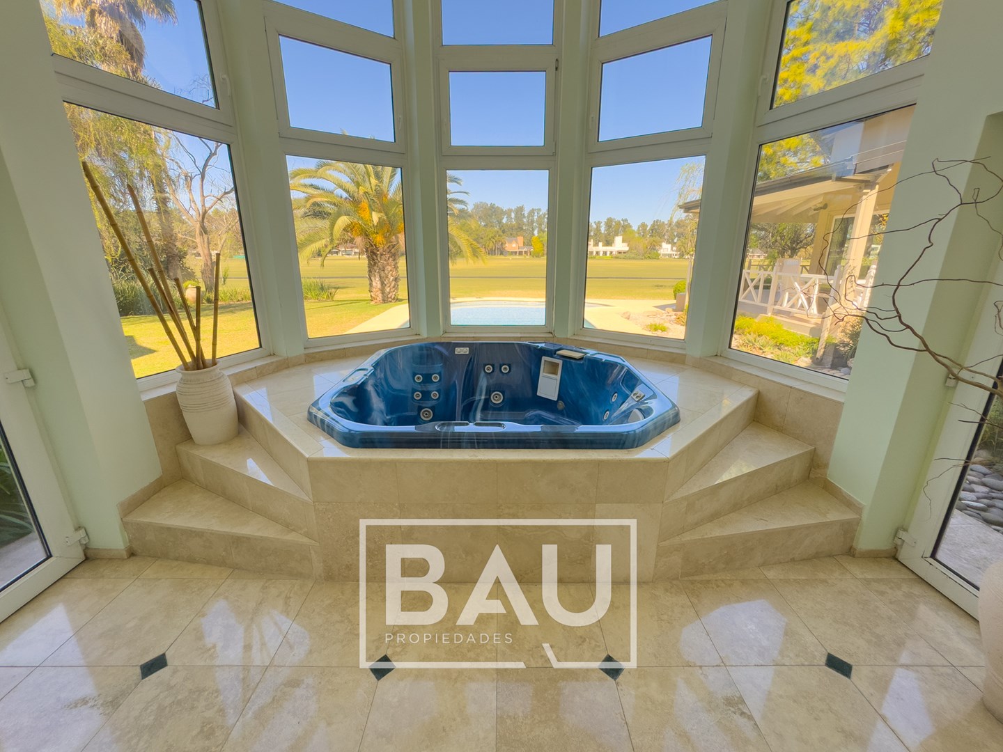 VENTA - CASA - SOBRE POLO - 4 DORMITORIOS - EXCELENTES VISTAS - LUMINOSA - PISCINA - JACUZZI - COUNTRY CLUB SAN DIEGO Excelente Propiedad con vista a Polo. La casa cuenta con un generador de electricidad marca Honda a gas. La calefacción es piso radiante con caldera Peisa. Los cuatro dormitorios y el quincho cuentan con aire acondicionado con split (frio) La sala comedor con aire acondicionado central. La piscina cuenta con calefactor a Gas. Las aberturas son de PVC con vidrio doble. Jacuzzi para cinco personas. Baño principal de mármol. Piso del comedor de mármol Travertino. Entrada, escalera y baño principal de mármol Botticino. La casa cuenta con un tanque hidró-neumático que provee de las misma presión de agua en toda la casa. Está provista de dos bombas de agua de profundidad. Una para la casa y la otra para el riego( que se encuentra computarizado). Ambas bombas, mediante un sistema de by pass pueden cumplir con ambos requerimientos ante la eventualidad de que una salga de servicio. El garage es en el subsuelo con capacidad para cuatro vehículos. Con dos bauleras. La casa cuenta con dos entretechos, a los que se puede acceder mediante escaleras internas. La casa cuenta con cuatro dormitorios. Dos en suite, y otros dos comparten un mismo baño. En total la casa cuenta con cinco baños. Tiene un comedor grande y dos living y un lugar especial para mesa de pool, todo en un sólo gran ambiente de concepto abierto. Cuenta además con un hogar a leña de mármol Botticino. Los detalles constructivos son de gran categoría en griferías, aberturas, revestimientos y pisos de ecowood. Además de DVH en toda la propiedad. BAU PROPIEDADES SAN DIEGO