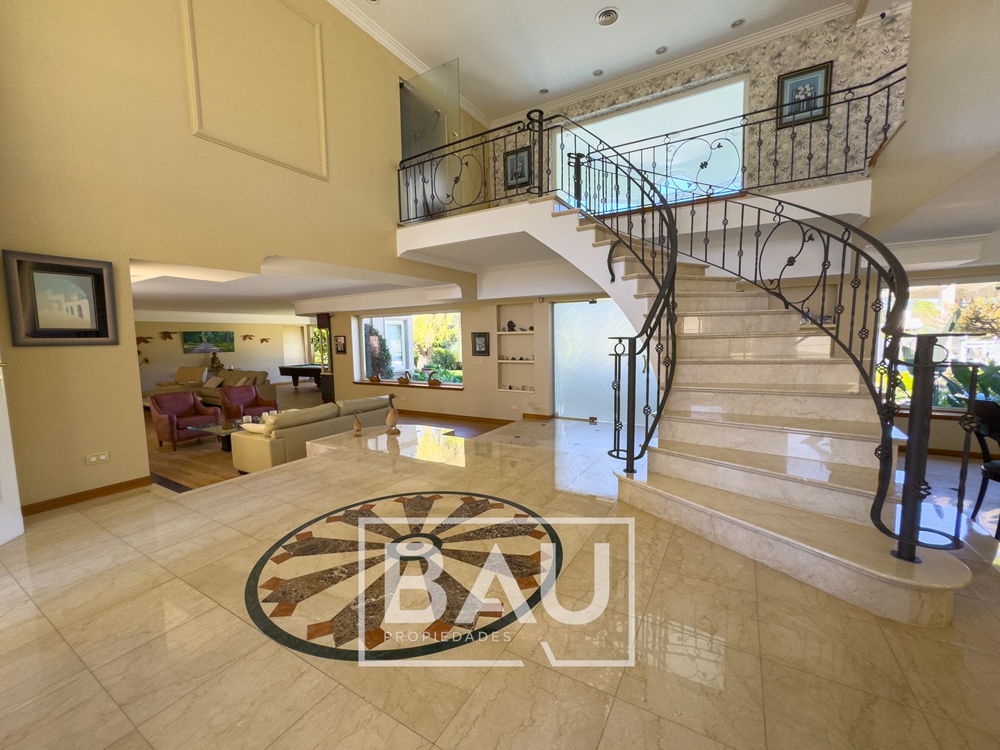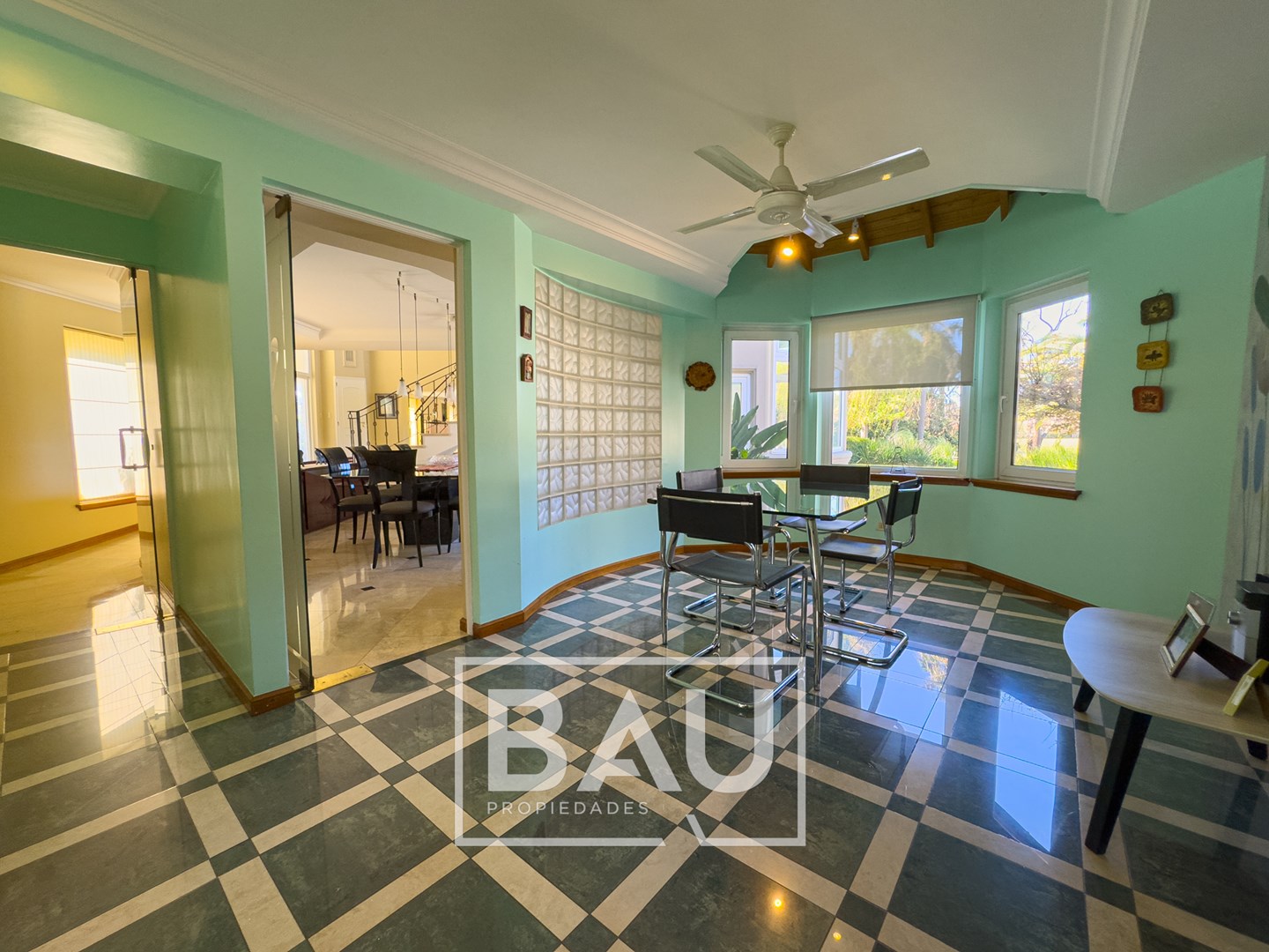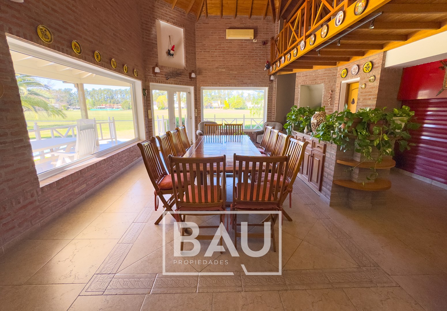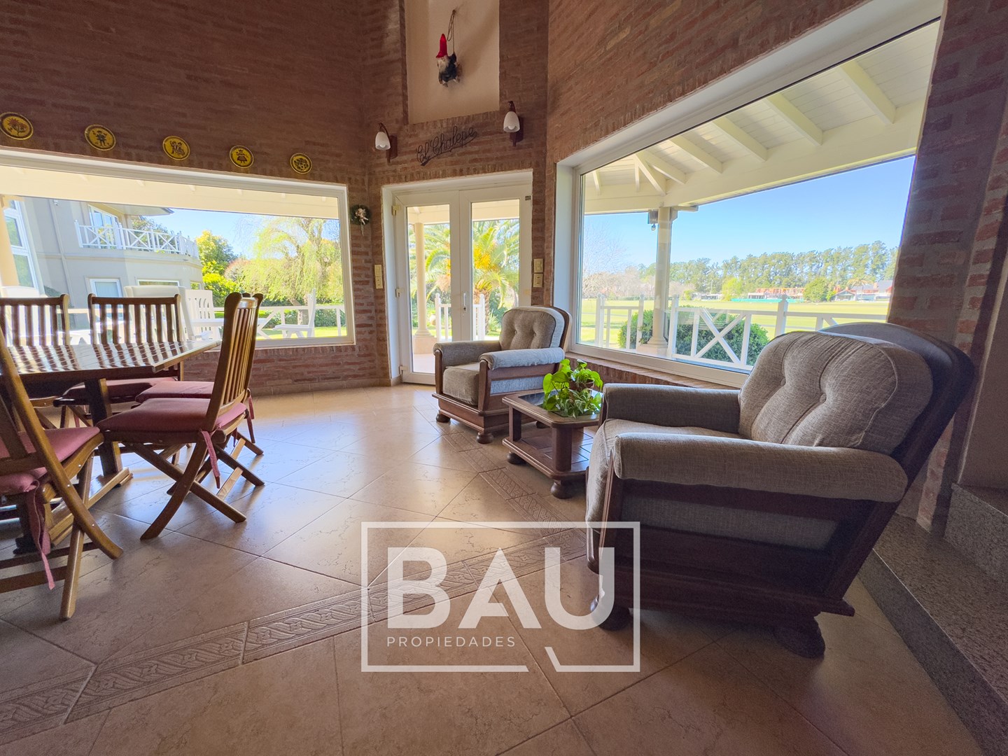 VENTA - CASA - SOBRE POLO - 4 DORMITORIOS - EXCELENTES VISTAS - LUMINOSA - PISCINA - JACUZZI - COUNTRY CLUB SAN DIEGO Excelente Propiedad con vista a Polo. La casa cuenta con un generador de electricidad marca Honda a gas. La calefacción es piso radiante con caldera Peisa. Los cuatro dormitorios y el quincho cuentan con aire acondicionado con split (frio) La sala comedor con aire acondicionado central. La piscina cuenta con calefactor a Gas. Las aberturas son de PVC con vidrio doble. Jacuzzi para cinco personas. Baño principal de mármol. Piso del comedor de mármol Travertino. Entrada, escalera y baño principal de mármol Botticino. La casa cuenta con un tanque hidró-neumático que provee de las misma presión de agua en toda la casa. Está provista de dos bombas de agua de profundidad. Una para la casa y la otra para el riego( que se encuentra computarizado). Ambas bombas, mediante un sistema de by pass pueden cumplir con ambos requerimientos ante la eventualidad de que una salga de servicio. El garage es en el subsuelo con capacidad para cuatro vehículos. Con dos bauleras. La casa cuenta con dos entretechos, a los que se puede acceder mediante escaleras internas. La casa cuenta con cuatro dormitorios. Dos en suite, y otros dos comparten un mismo baño. En total la casa cuenta con cinco baños. Tiene un comedor grande y dos living y un lugar especial para mesa de pool, todo en un sólo gran ambiente de concepto abierto. Cuenta además con un hogar a leña de mármol Botticino. Los detalles constructivos son de gran categoría en griferías, aberturas, revestimientos y pisos de ecowood. Además de DVH en toda la propiedad. BAU PROPIEDADES SAN DIEGO