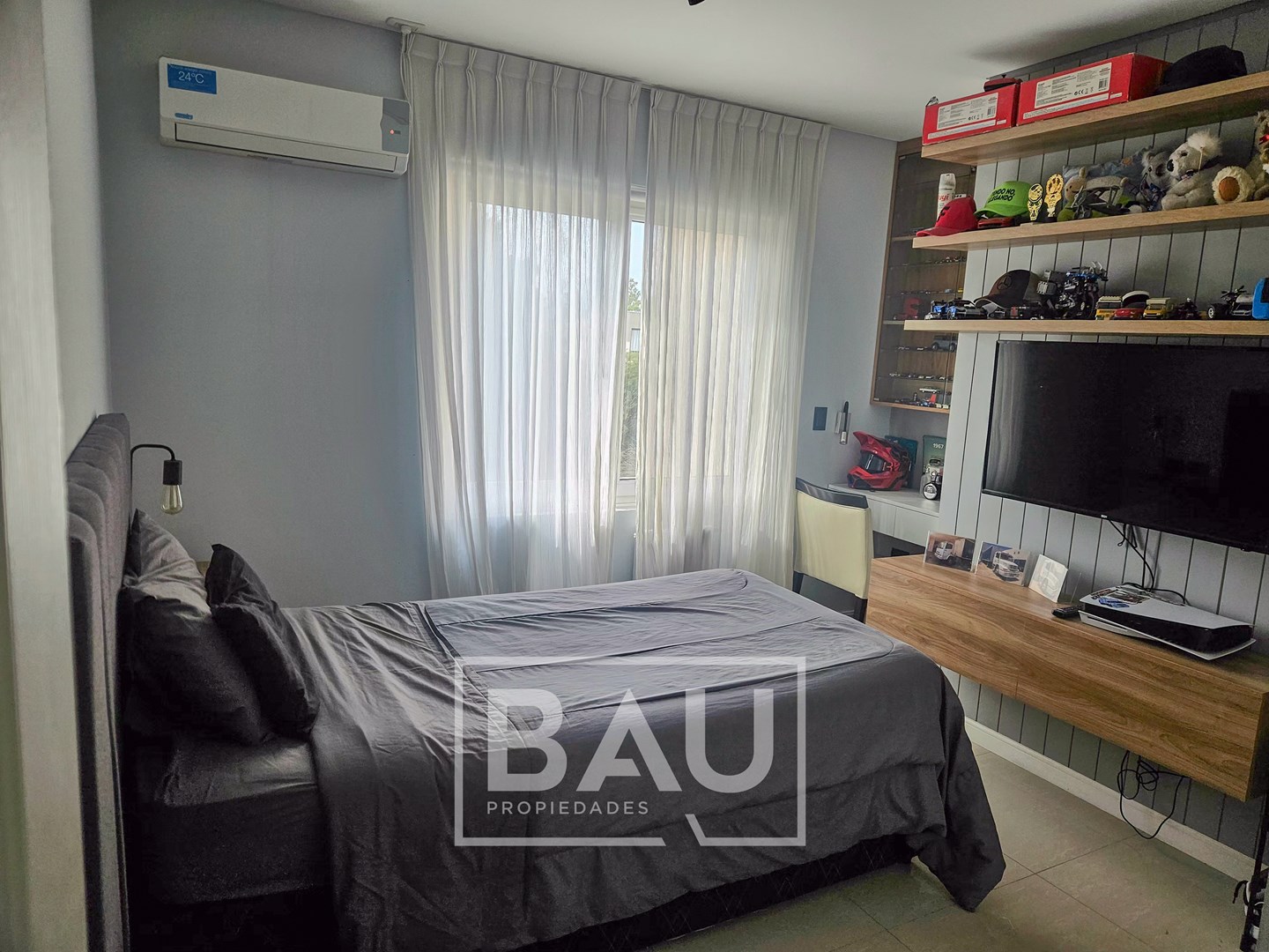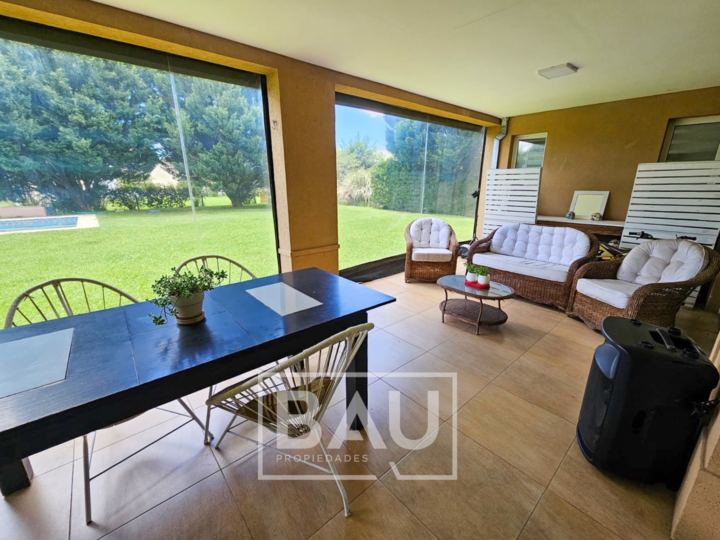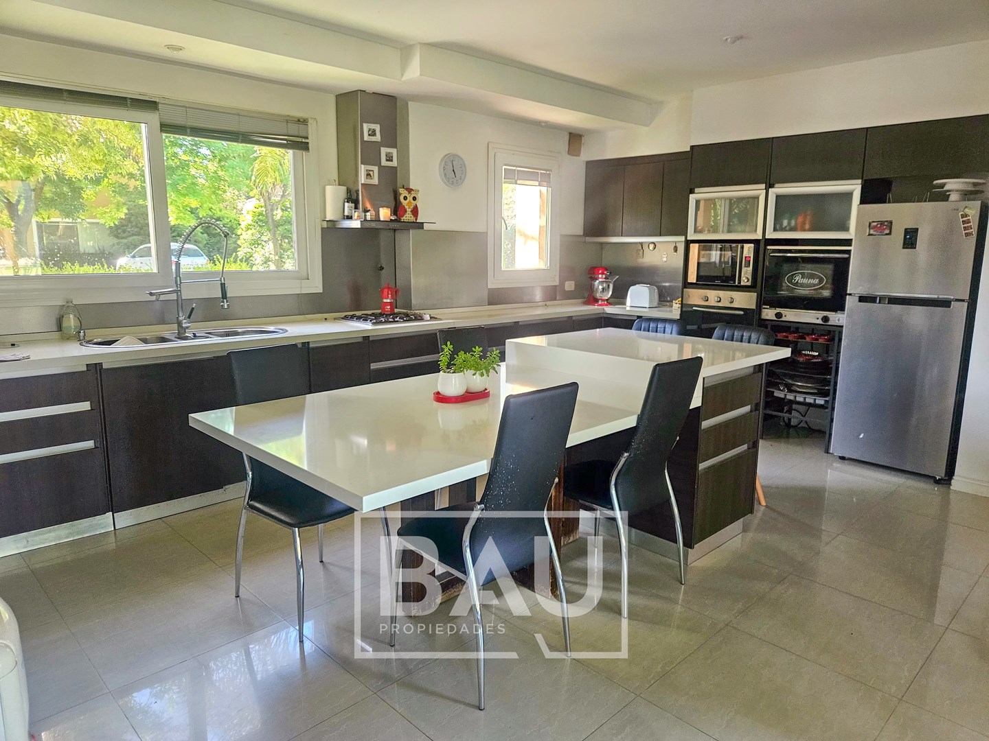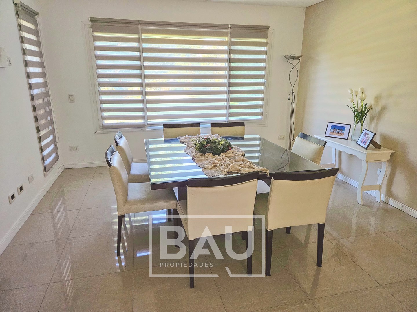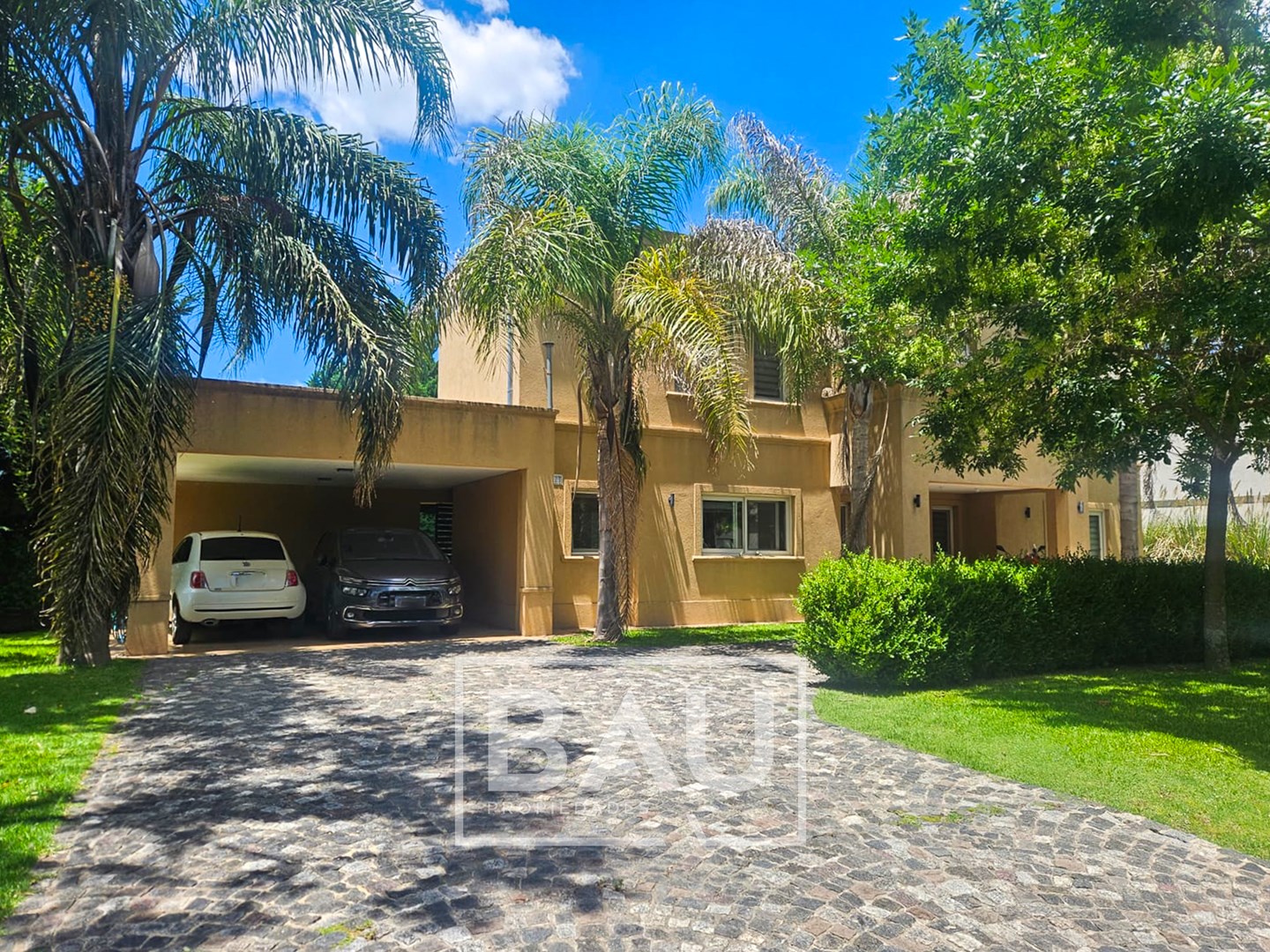 BAU PROPIEDADES – VENTA – CASA MODERNA – 4 DORMITORIOS – PISCINA – 310 m² – BARRIO CERRADO SANTA ANA Moderna propiedad desarrollada en dos plantas, sobre lote de 916 m² y con una superficie cubierta de 310 m². La casa se destaca por su diseño funcional, ambientes amplios y muy buena calidad constructiva, combinando confort y practicidad. En planta baja, el ingreso conduce a un luminoso living comedor con muy buena integración de espacios. La cocina, amplia y moderna, cuenta con gran isla central, mesadas de Silestone, horno empotrado, comedor diario y generoso espacio de guardado. Dispone de un toilette de recepción completo, debajo de la escalera se encuentra un práctico espacio de guardado. La galería se encuentra cerrada con toldos, generando un ambiente para utilizar durante todo el año. Cuenta con parrilla con puerta guillotina, horno pizzero y mesada con bacha de apoyo. Además, cuenta con lavadero independiente, dependencia de servicio, baño exterior para piscina y sala de maquinas. En planta alta se desarrolla el sector privado de la casa. La suite principal cuenta con vestidor oculto, placard adicional con puertas corredizas y baño privado. Los otros tres dormitorios disponen de placards empotrados con puertas corredizas y comparten un baño completo compartimentado con antebaño, doble bacha y bañera. Todos los dormitorios cuentan con aire acondicionado, radiadores y muy buena iluminación natural. La propiedad posee aberturas de PVC con doble vidrio hermético, sistema oscilobatiente y mosquiteros. En el exterior, el jardín se encuentra completamente parquizado con grama bahiana y sistema de riego por aspersores. La piscina mide 9 x 4 metros, cuenta con playa húmeda y revestimiento Aquavations, que reduce considerablemente el mantenimiento. Al frente dispone de cochera para dos autos y entrada de cortesía en pórfido. La casa cuenta con calefacción por radiadores mediante caldera y aire acondicionado en todos los ambientes. Una propiedad ideal para quienes buscan una casa moderna, funcional y bien equipada dentro de un entorno residencial tranquilo. Si querés conocerla o coordinar una visita, contactanos y te contamos todos los detalles de esta propiedad. La información comercial incluida representa material de carácter informativo y/o ilustrativo, pudiendo no ser exacta, estar sujeta a errores, omisiones, cambios, incluyendo el precio o la retirada de la oferta sin previo aviso. BAU PROPIEDADES OESTE